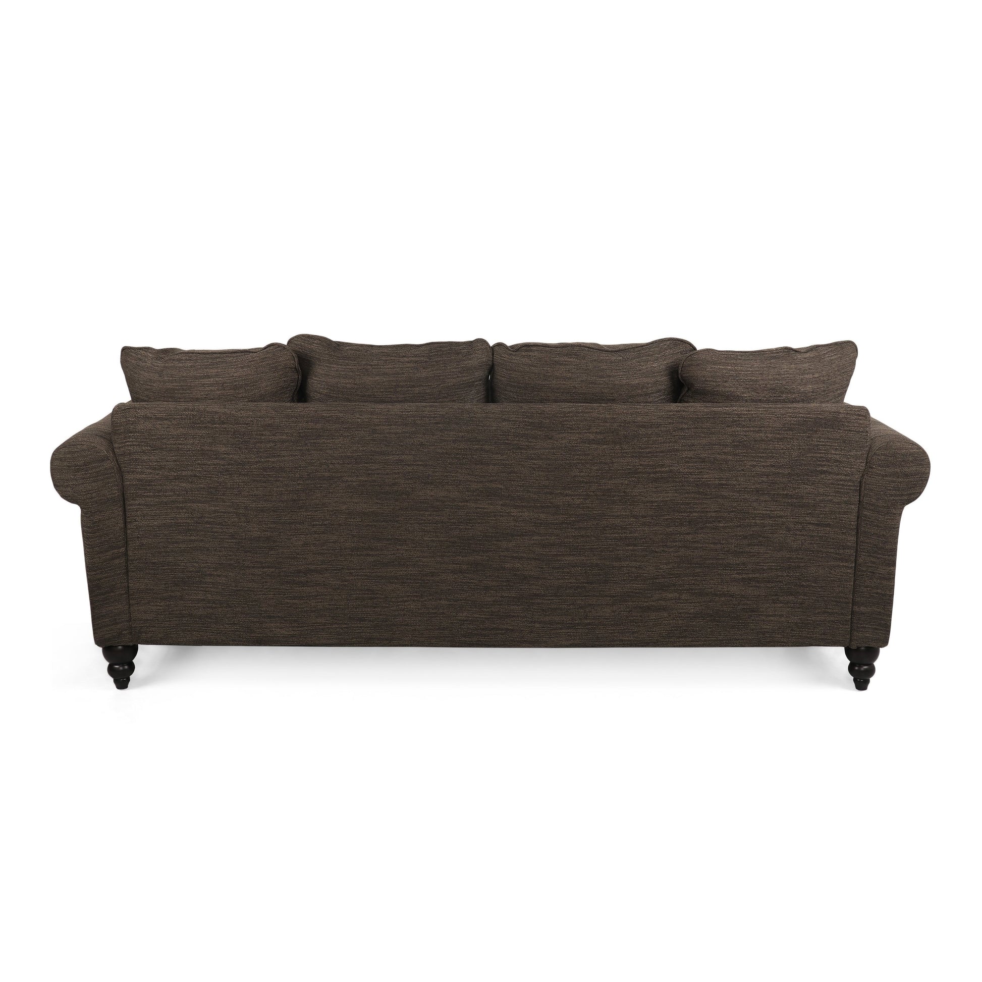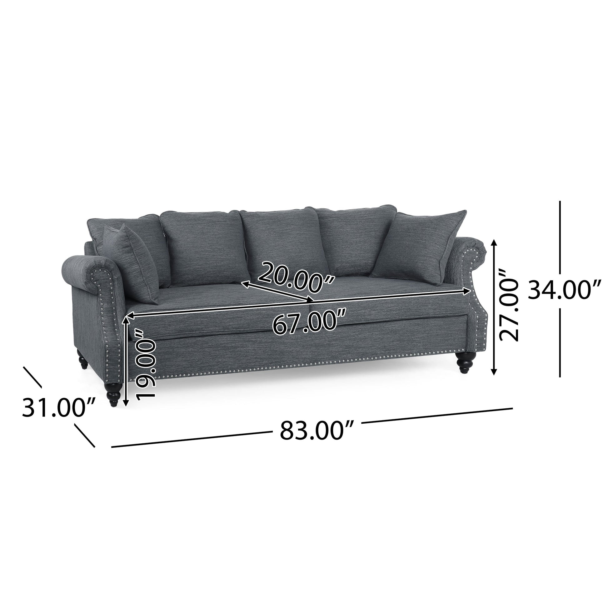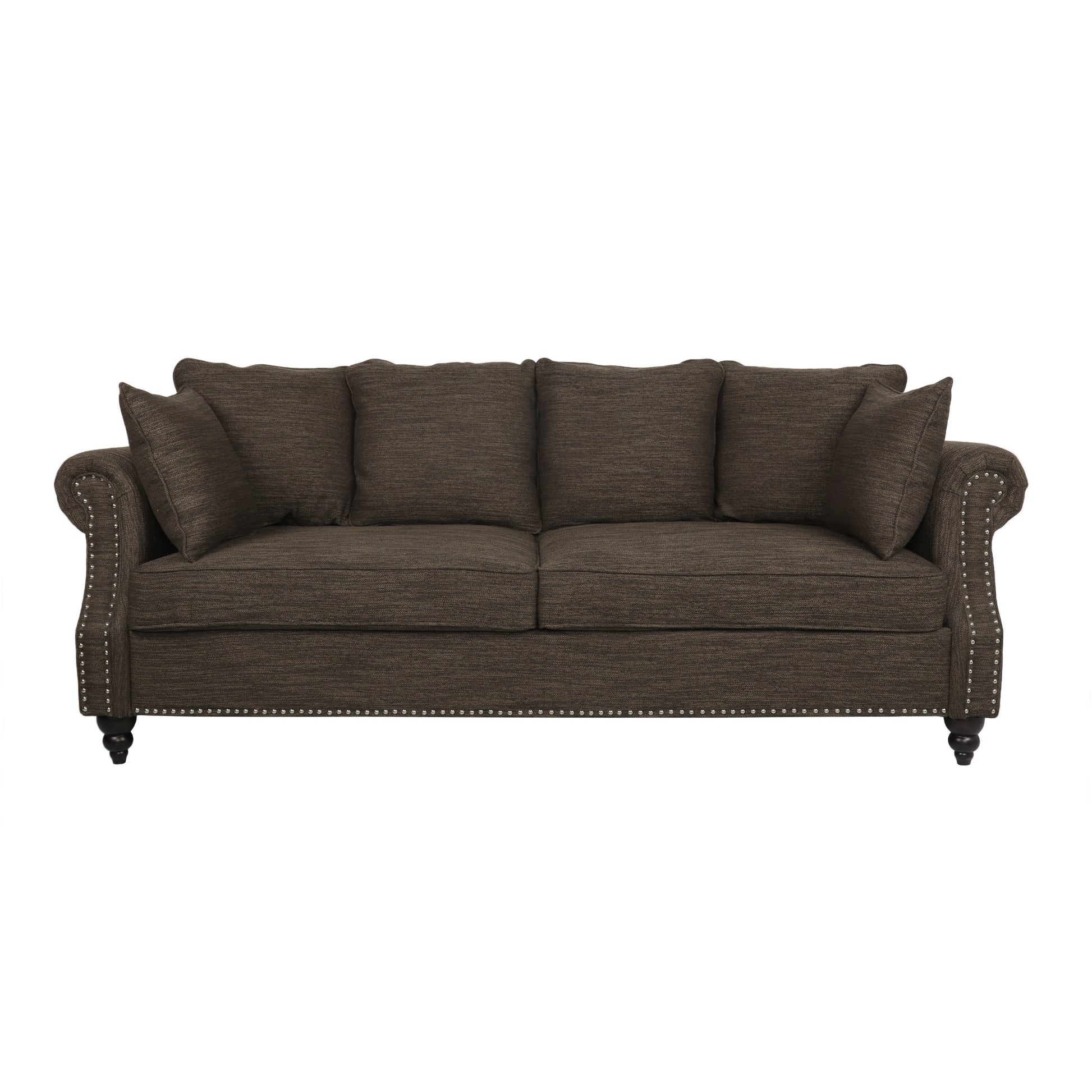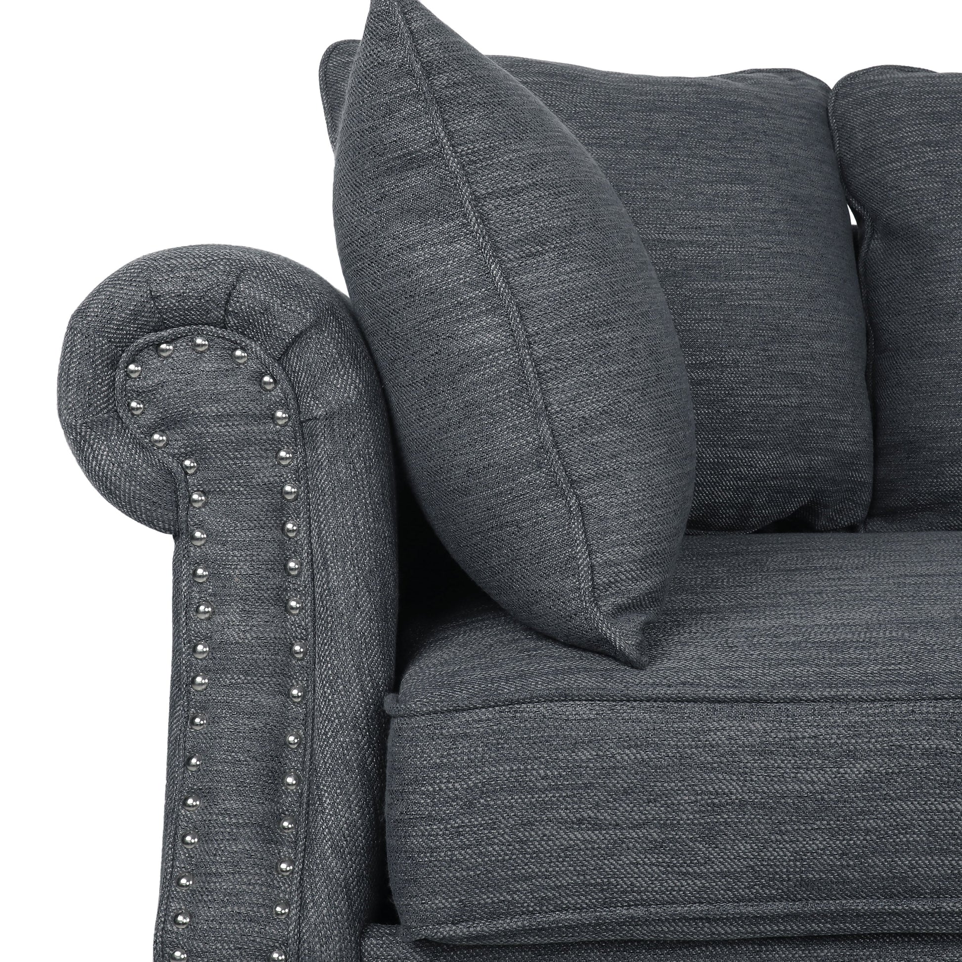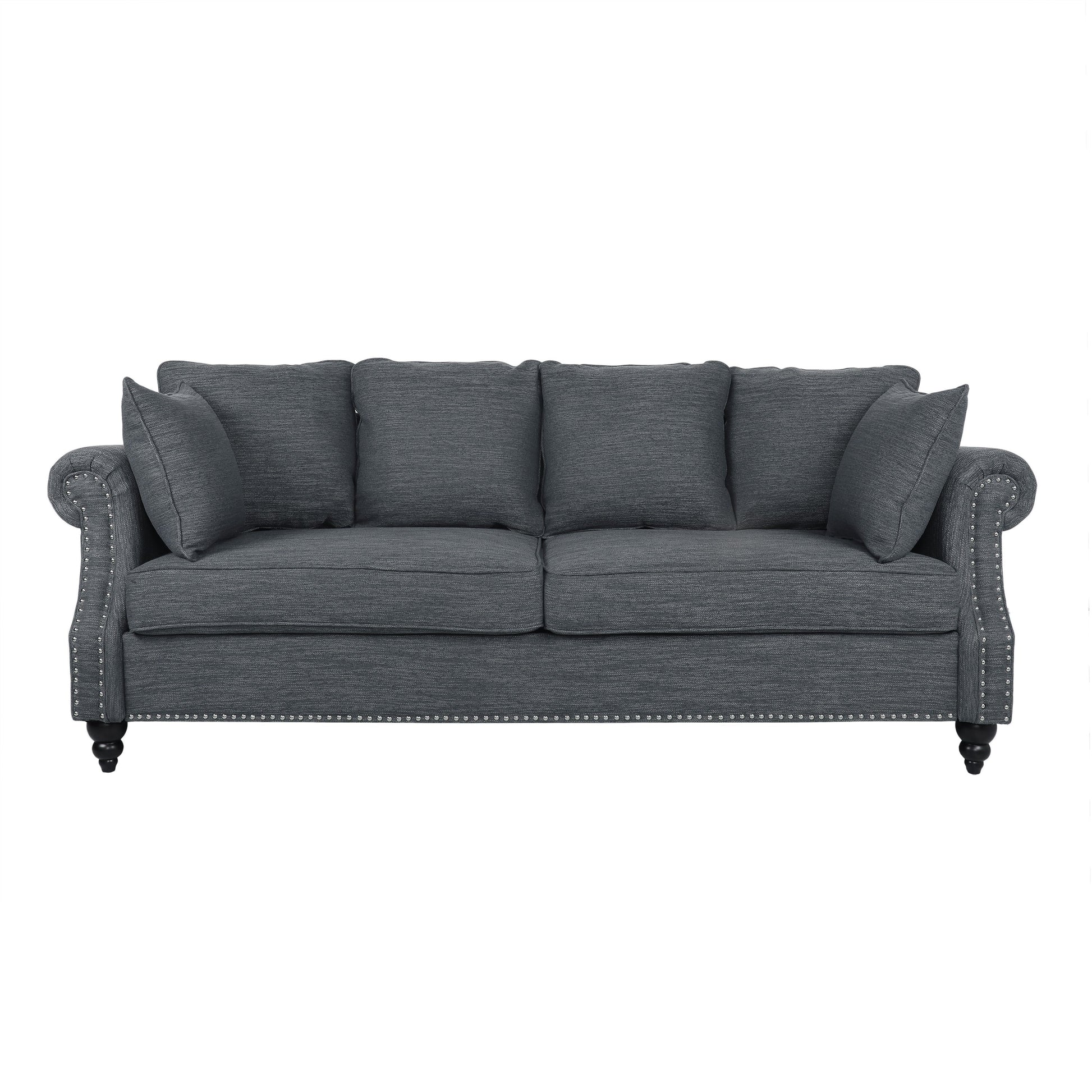 Créez un ensemble de sièges chic pour votre intérieur. Avec son dossier coussiné et ses coussins décoratifs inclus, notre canapé trois places offre à votre intérieur une touche classique et contemporaine. Doté d'une superbe bordure cloutée et d'accoudoirs encastrés roulés, ce canapé est une pièce maîtresse et épurée qui transformera votre salon en un espace ouvert et épuré. Que vous recherchiez un espace convivial ou un espace détente, ce canapé apporte une touche chaleureuse et raffinée à n'importe quelle pièce.