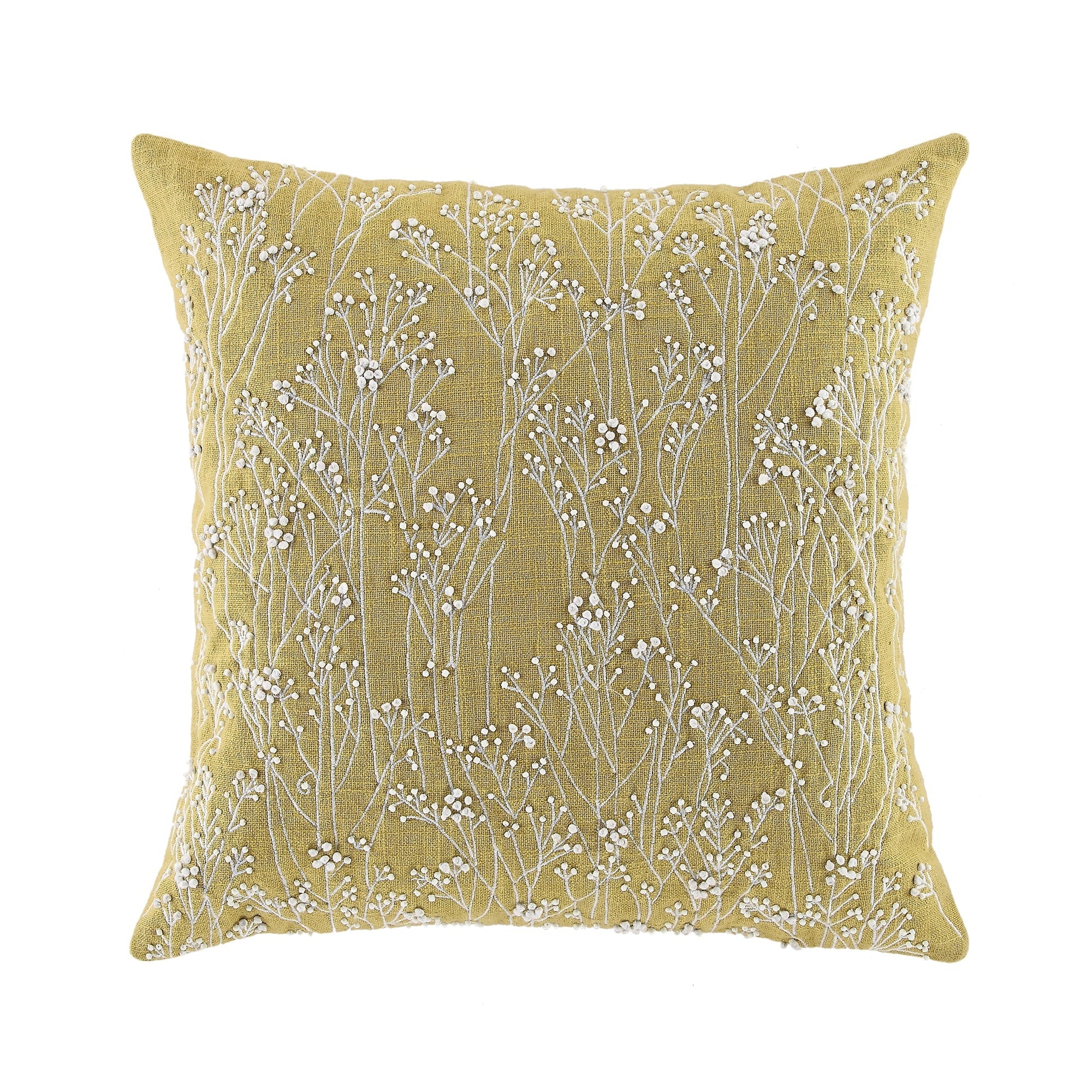 Notre coussin brodé Meadow est fabriqué à la main en Inde en utilisant les meilleurs matériaux et garnitures.