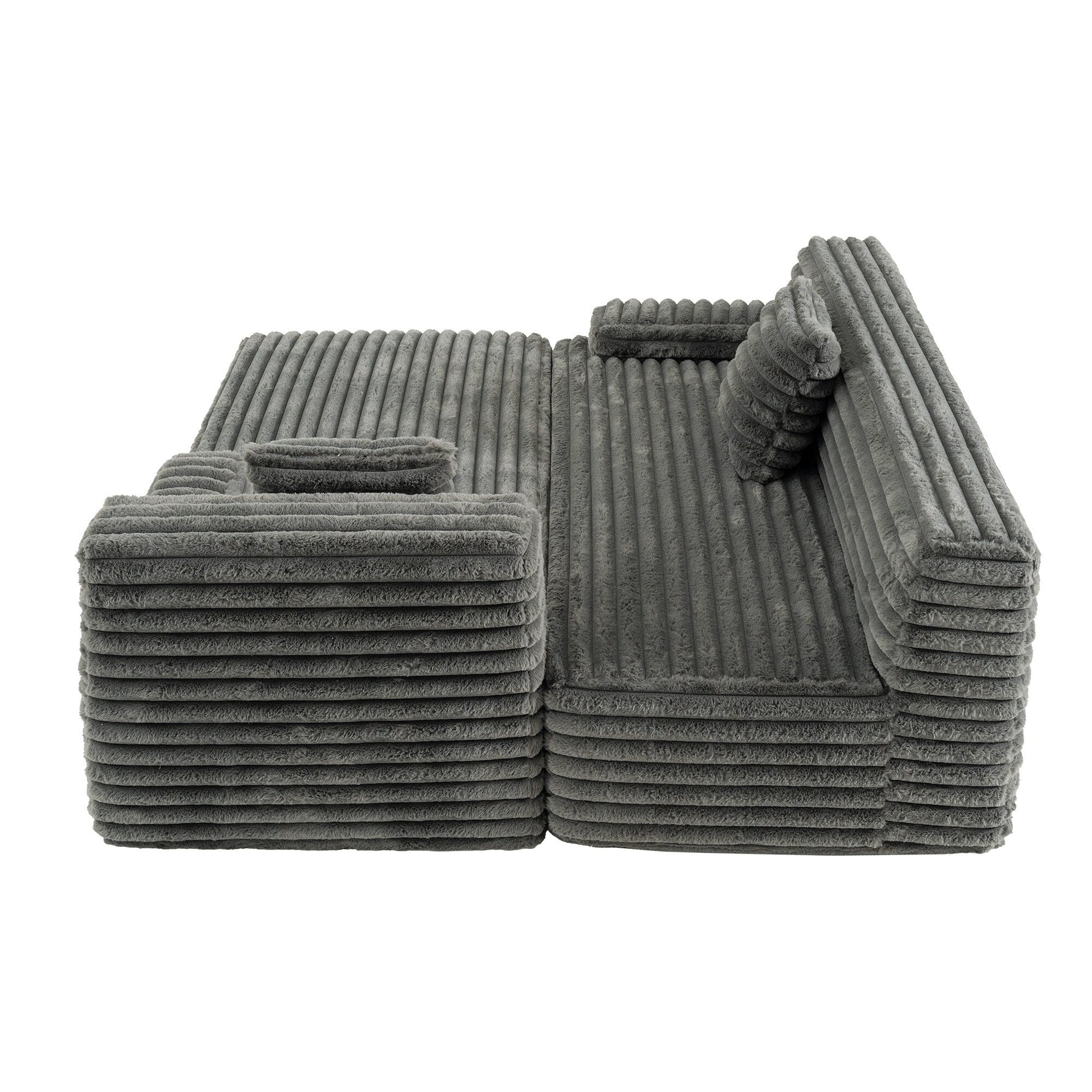 Ce canapé modulaire style nuage se compose de deux parties distinctes pour des configurations personnalisables : en L, droites ou en lit. Revêtu de fausse fourrure de lapin ultra-douce et doté de coussins amovibles, il offre un confort moelleux, un nettoyage facile et s'adapte à toutes les pièces et à toutes les occasions.