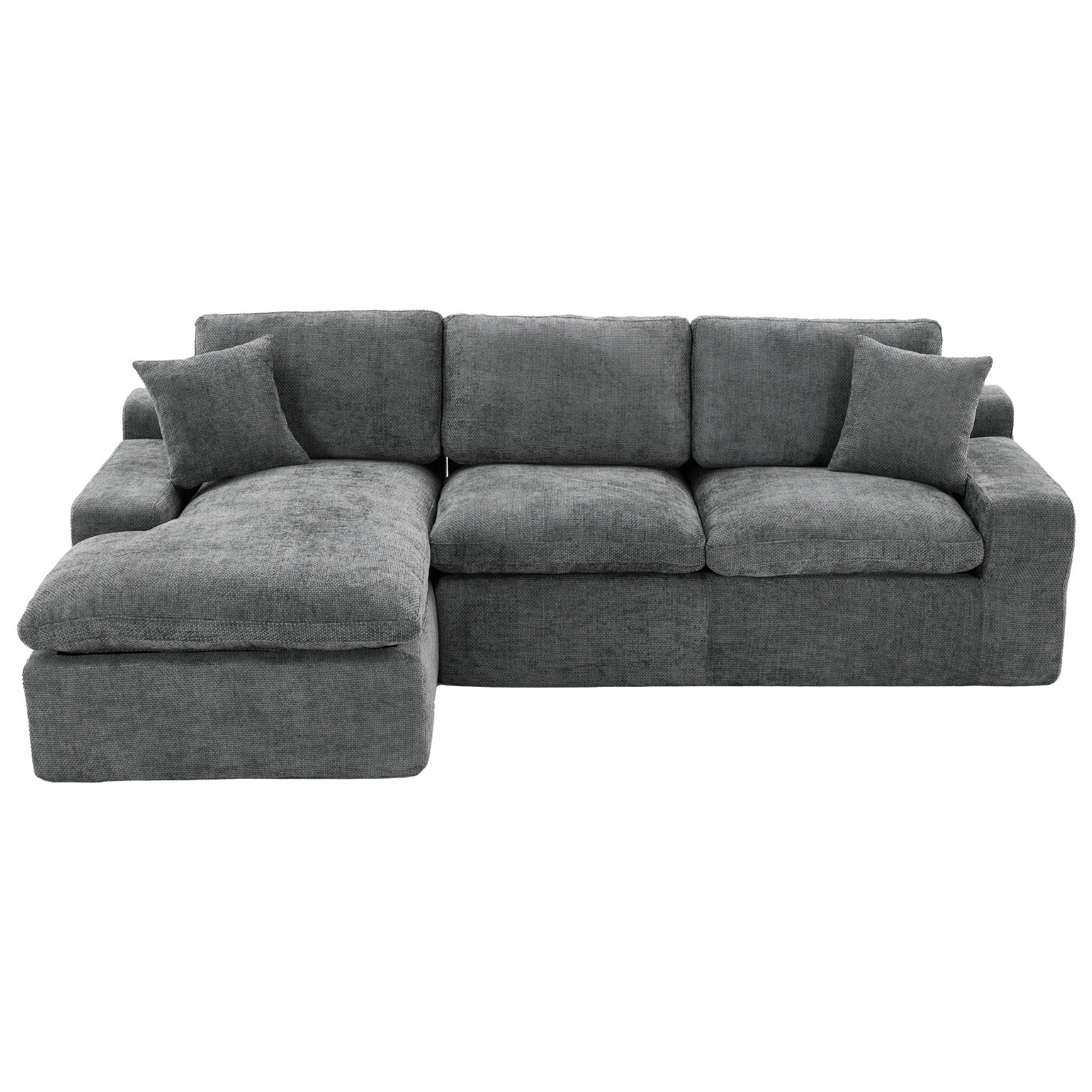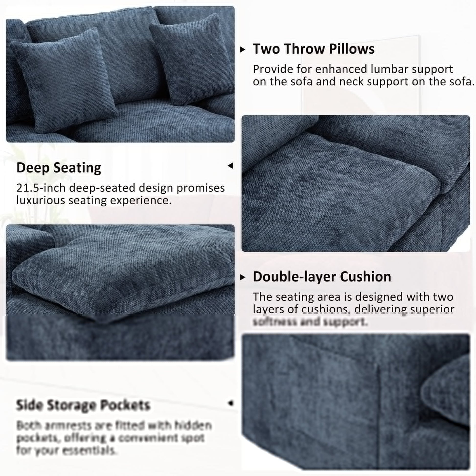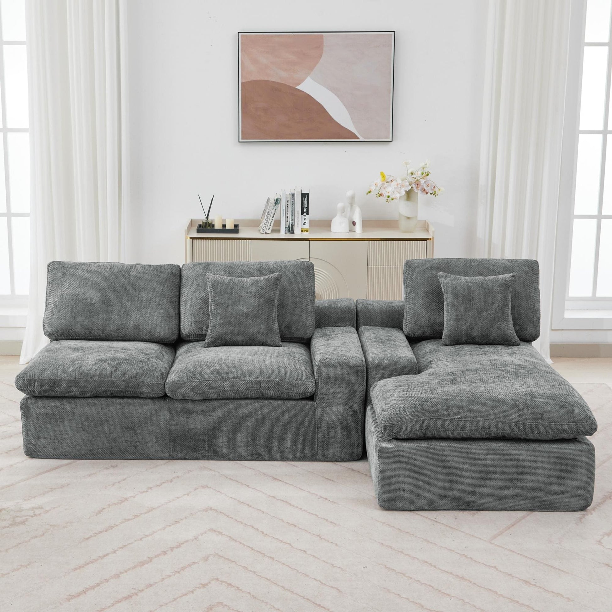 Ce canapé d'angle modulaire Cloud offre des configurations polyvalentes pour s'adapter à tous les espaces de vie. Doté de coussins double épaisseur en mousse compressée moelleuse et d'un soutien robuste, il offre un confort équilibré. Revêtu d'un tissu chenille résistant, il comprend des assises profondes de 54 cm, des poches de rangement latérales dissimulées et deux coussins assortis pour plus de confort et de style.
