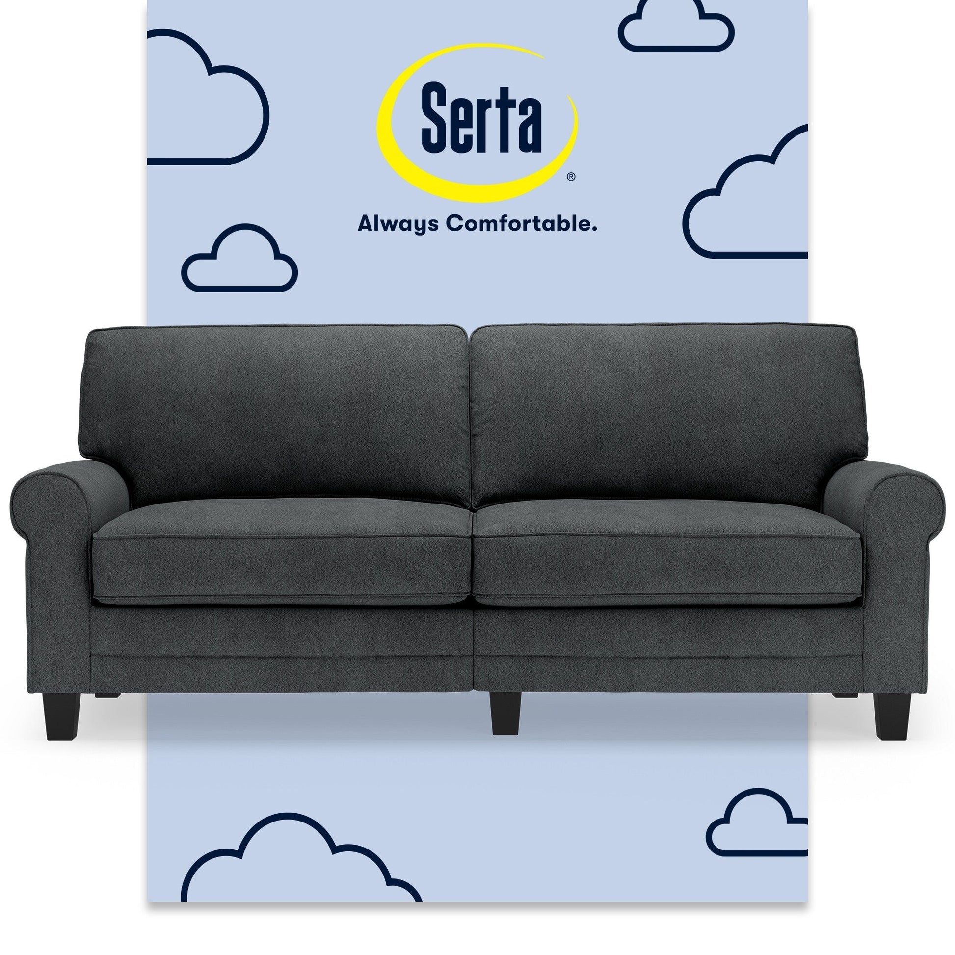• Mousse et construction Serta : Fabriqués avec un cadre en bois massif équipé de ressorts sinueux pour un soutien accru et de pieds robustes en bois massif pouvant supporter jusqu'à 600 lb. Tous les canapés Serta sont fabriqués à partir de mousse de qualité, non recyclée et non toxique, pour une respirabilité et une sécurité optimales.