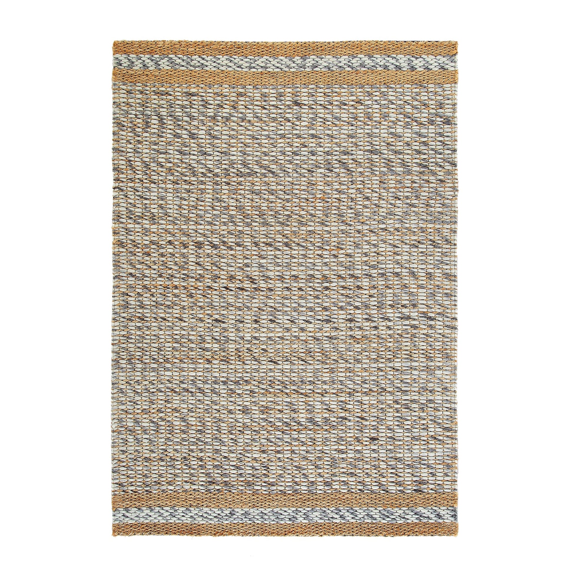 Conçu avec soin à partir d'une combinaison de laine de haute qualité et de jute résistant, le tapis Kerala arbore des tons neutres. Il est agrémenté d'une bordure, le tout réalisé selon les techniques de tissage plat et jacquard, ce qui en fait un ajout parfait à tout intérieur.