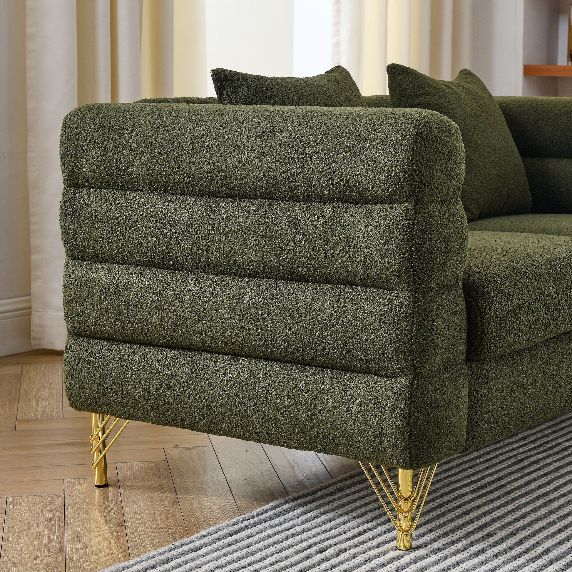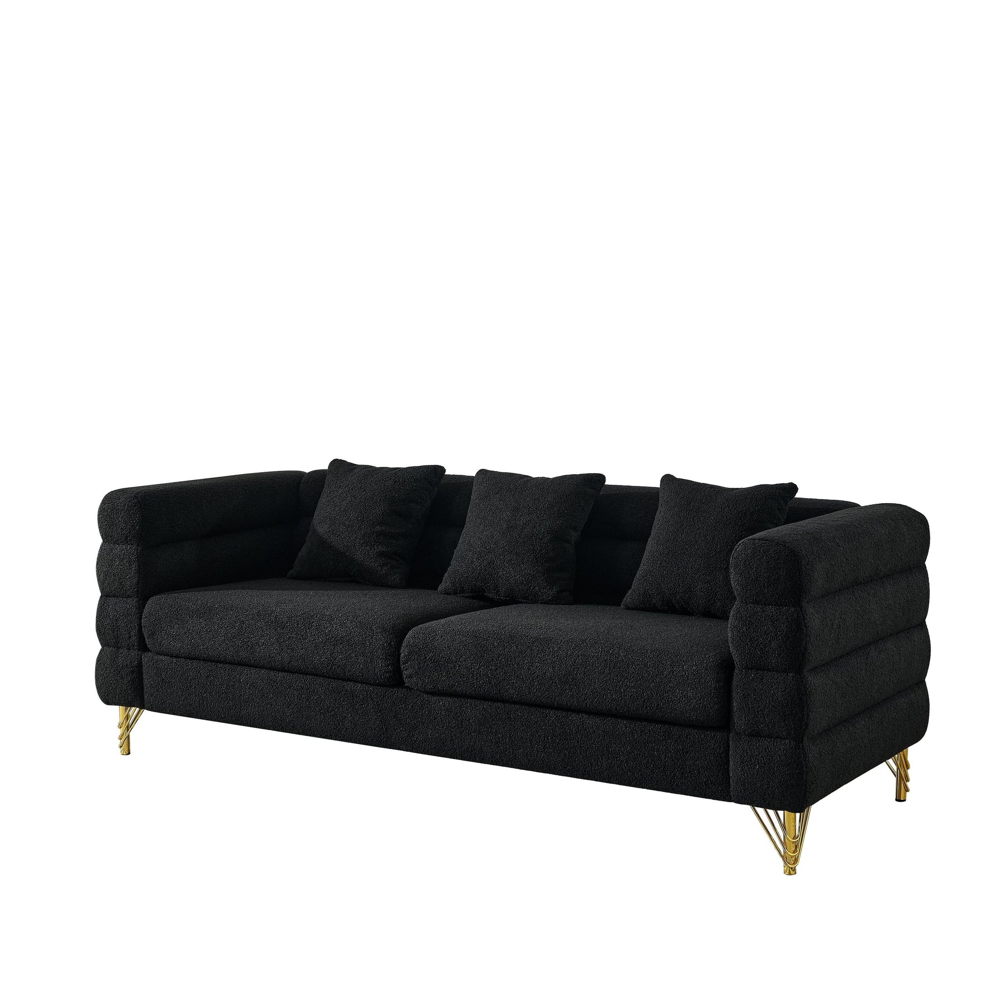 _ STREAMLINE MODERNE : Inspiré du design Art déco international de Streamline Modern, le canapé Buccleuch présente une silhouette distinctive aux courbes douces et aux longues lignes horizontales, avec un éclat métallique sur les pieds. Ce canapé est extrêmement élégant. _ [3 coussins lombaires premium] Le canapé est livré avec trois petits coussins lombaires (taille : 40 x 40 cm, tissu de la même couleur que le canapé), qui peuvent être placés sur la zone lombaire ou tenus à la main en position assise. _ DURABLE : Ce canapé de salon trois places moderne est soutenu par une structure en bois massif et des pieds robustes en métal poli doré. Il est robuste et durable. Chaque siège peut facilement supporter jusqu'à 113 kg, ce qui le rend idéal pour trois personnes. _ Dimensions hors tout : largeur 206 cm x profondeur 81 cm x hauteur 71 cm _ Dimensions détaillées : largeur d'assise 167 cm, profondeur d'assise 62 cm, hauteur d'assise 48 cm _ [Livraison rapide]. Tous nos canapés sont expédiés depuis notre entrepôt aux États-Unis pour une livraison rapide.
