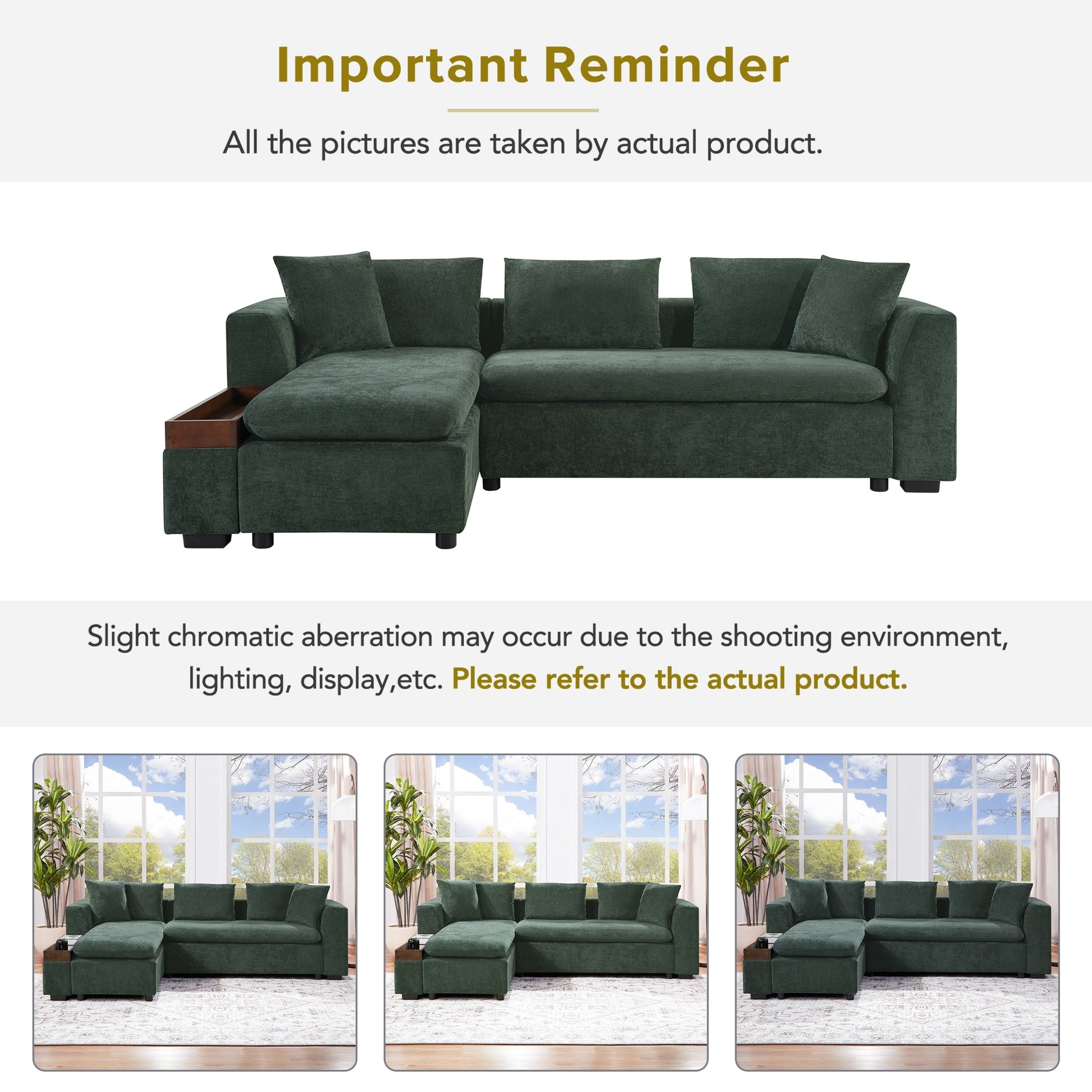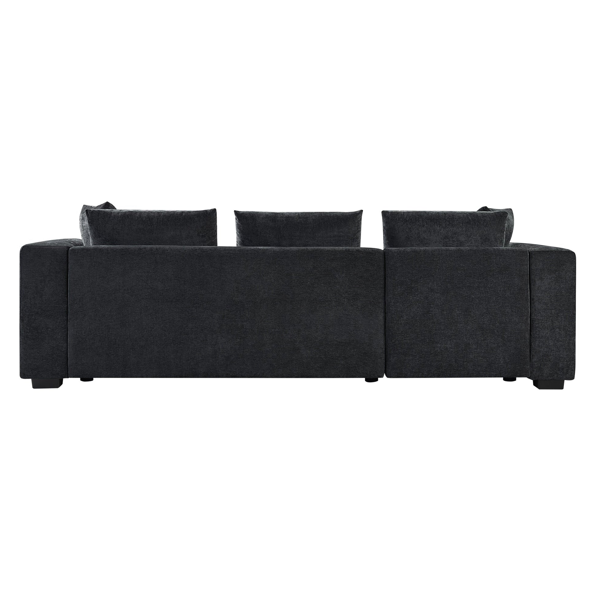 Cet élégant canapé d'angle en L allie design moderne et confort d'assise. Revêtu d'un luxueux tissu chenille, il offre une texture douce et une grande durabilité. Un compartiment de rangement en bois intégré permet de ranger vos essentiels, tandis que ses assises profondes de 48 cm offrent un espace de détente généreux. Sa construction robuste assure une stabilité optimale, complétée par des coussins chenille assortis pour plus de confort et de style.