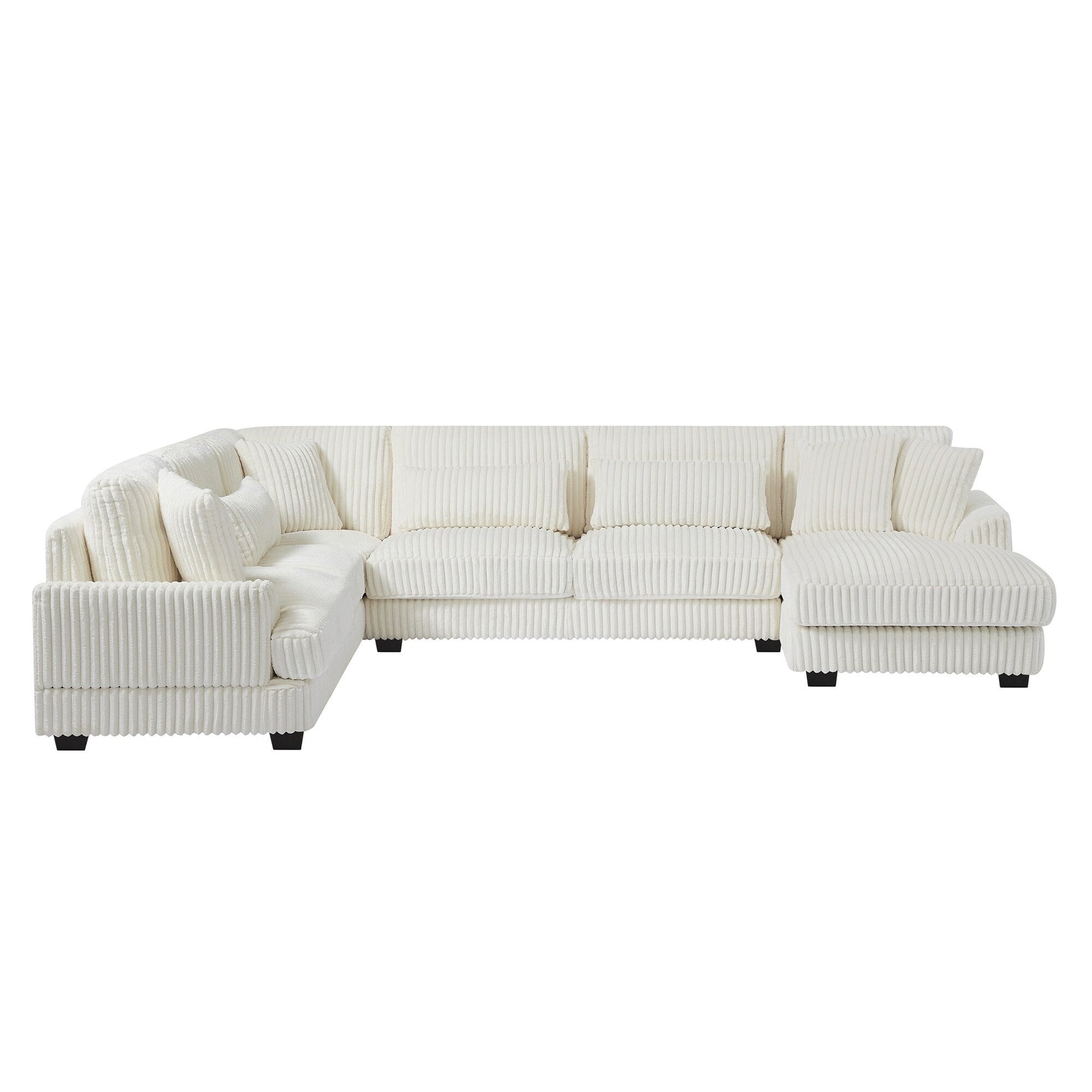 Ce canapé d'angle surdimensionné en U offre une assise généreuse pour les réunions et la détente. Revêtu de velours côtelé ultra-doux, il est doté d'accoudoirs ergonomiques incurvés et d'une méridienne intégrée. Il est également doté de coussins de soutien et d'une structure robuste, alliant style, confort et fonctionnalité pour tous les espaces de vie.
