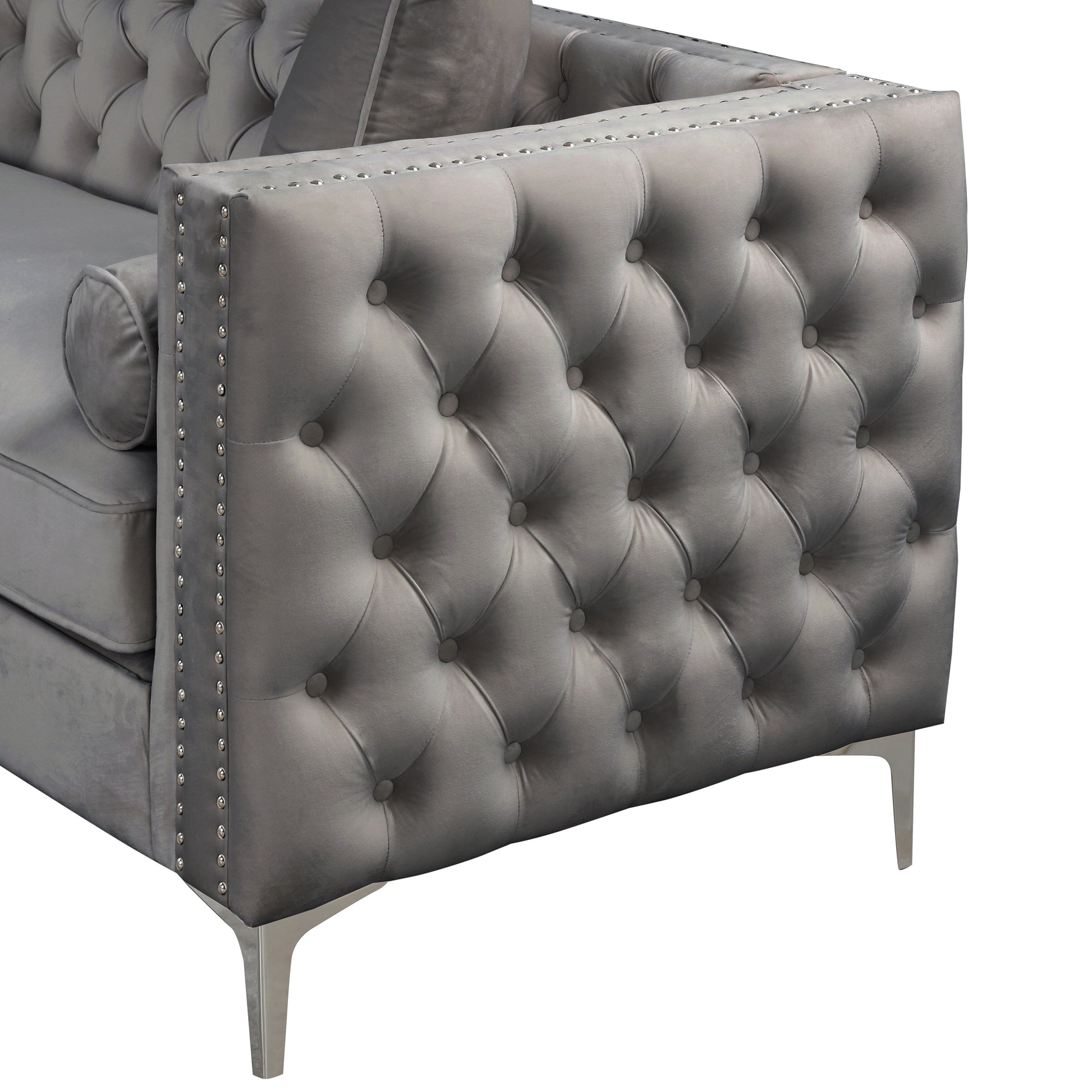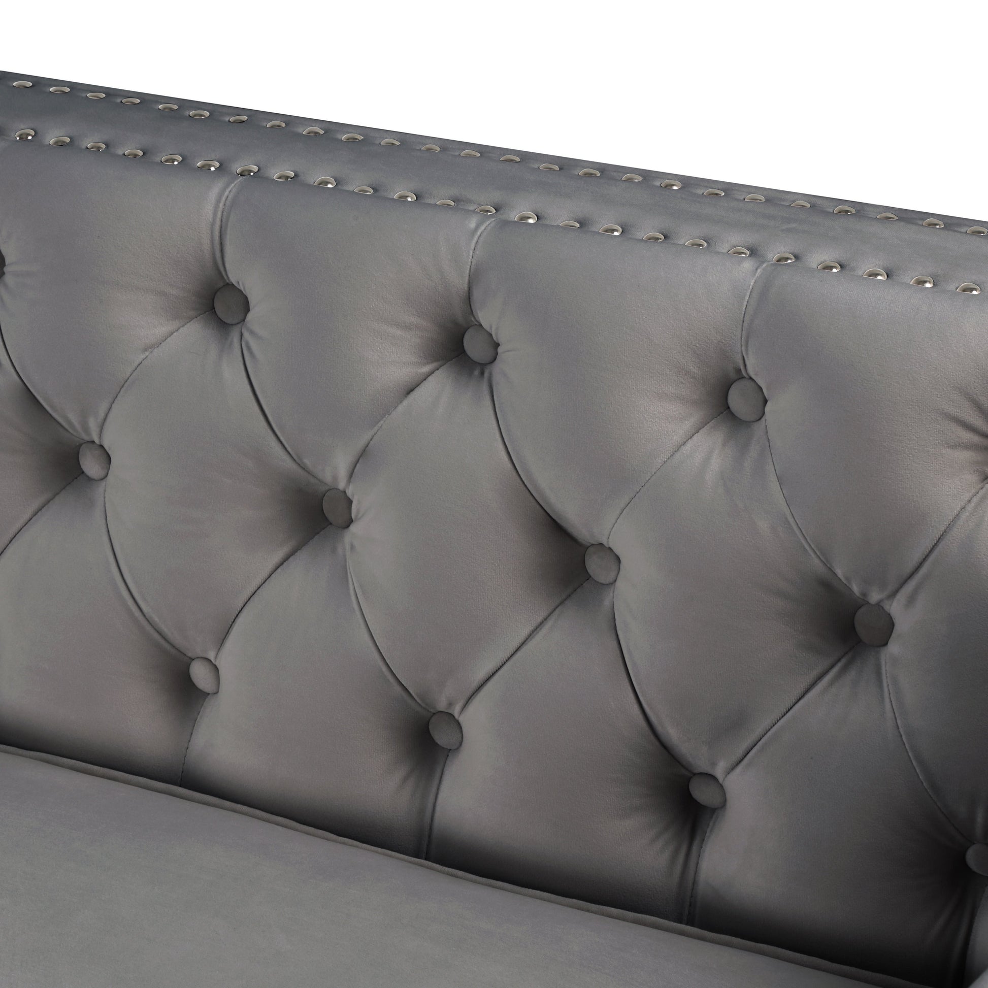 Design luxueux : inspiré du style Chesterfield, ce canapé en velours pour le salon présente une garniture à tête de clou classique et un capitonnage à boutons sur le dossier et l'accoudoir carré, créant une apparence classique et sophistiquée qui ajoute du glamour à votre maison, salon, appartement et petit espace.