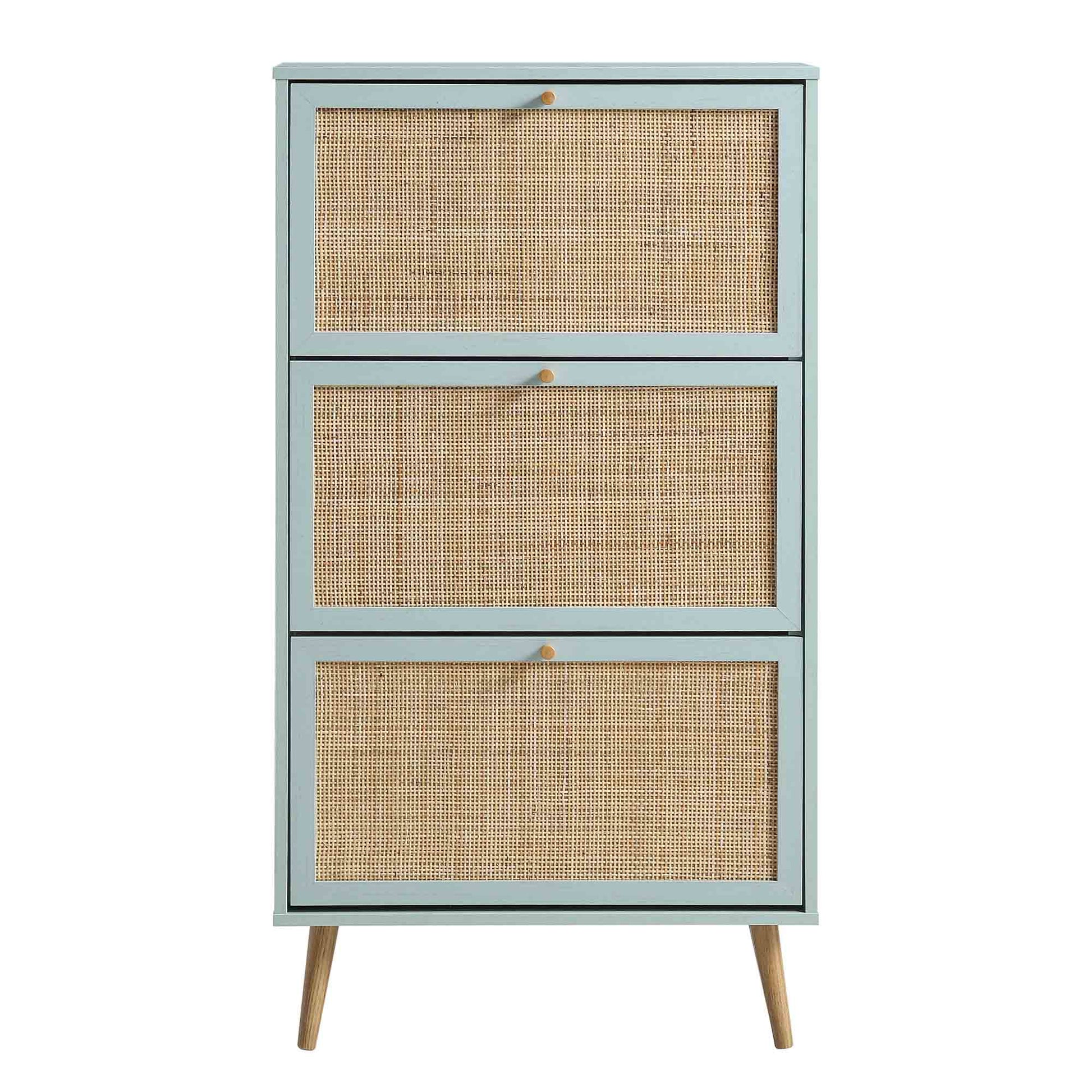 Meuble à chaussures à 3 niveaux en rotin Frances, menthe