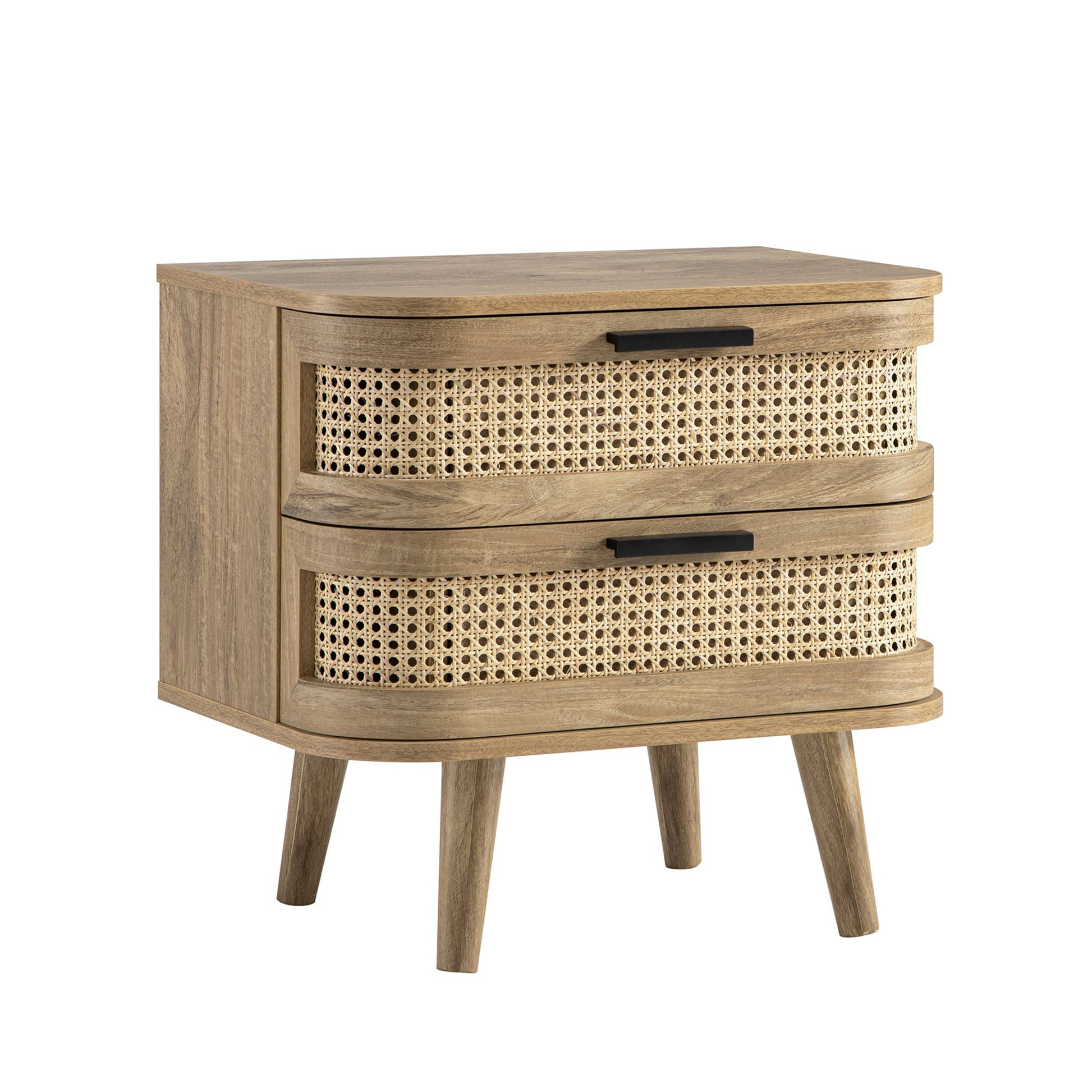 Doté d'une finition effet bois naturel, son profil magnifiquement arrondi et ses façades de tiroirs en rotin aérées apportent une touche d'élégance décontractée à n'importe quel espace.