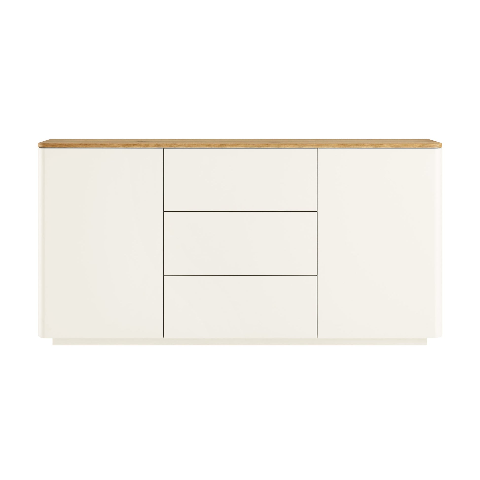 Le buffet comprend 2 portes d'armoire à ouverture par pression et 3 tiroirs, offrant un grand espace de rangement à l'intérieur.