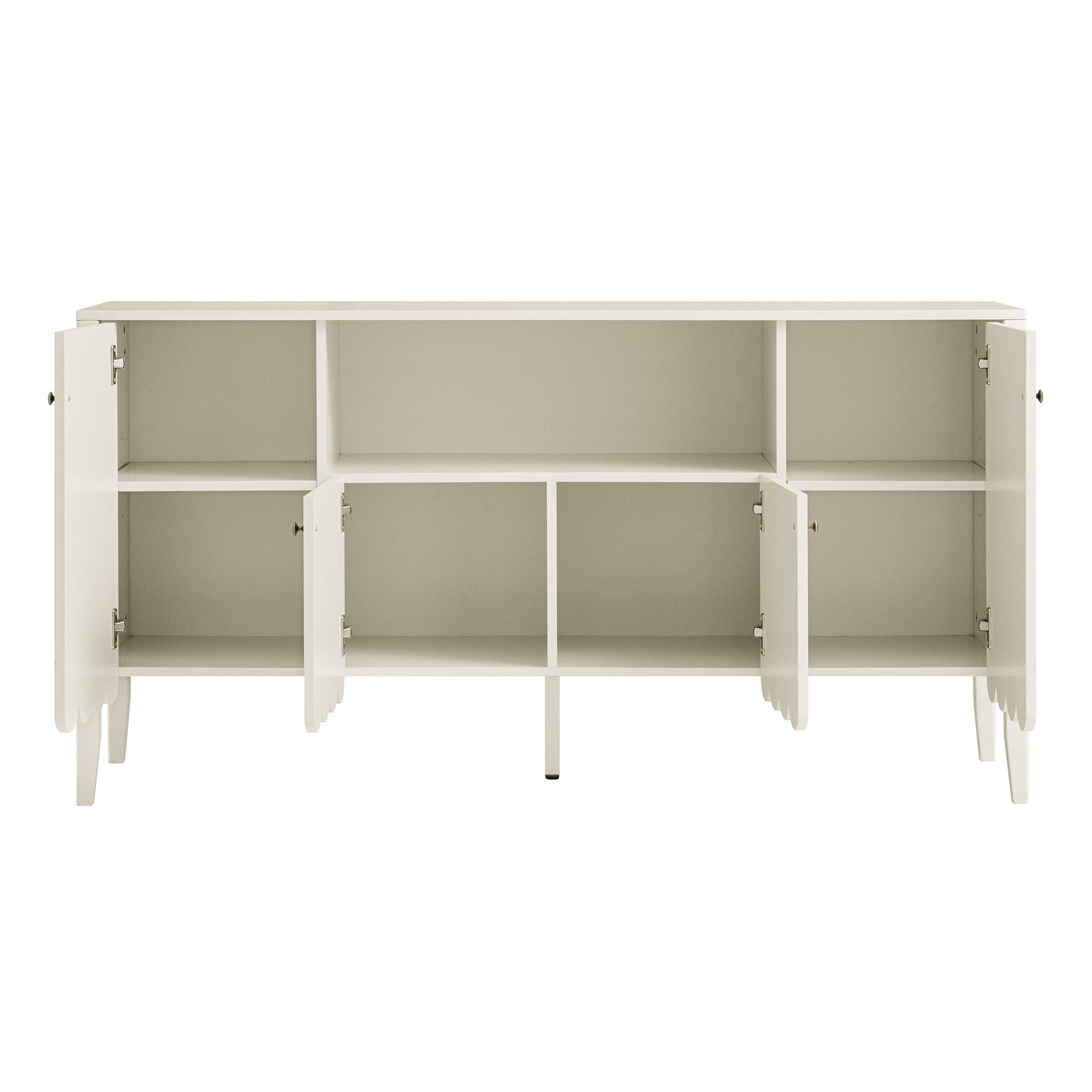 Le buffet de 59 pouces de large est doté de 4 portes ouvrant sur de nombreux rangements, avec des étagères intérieures réglables en hauteur.