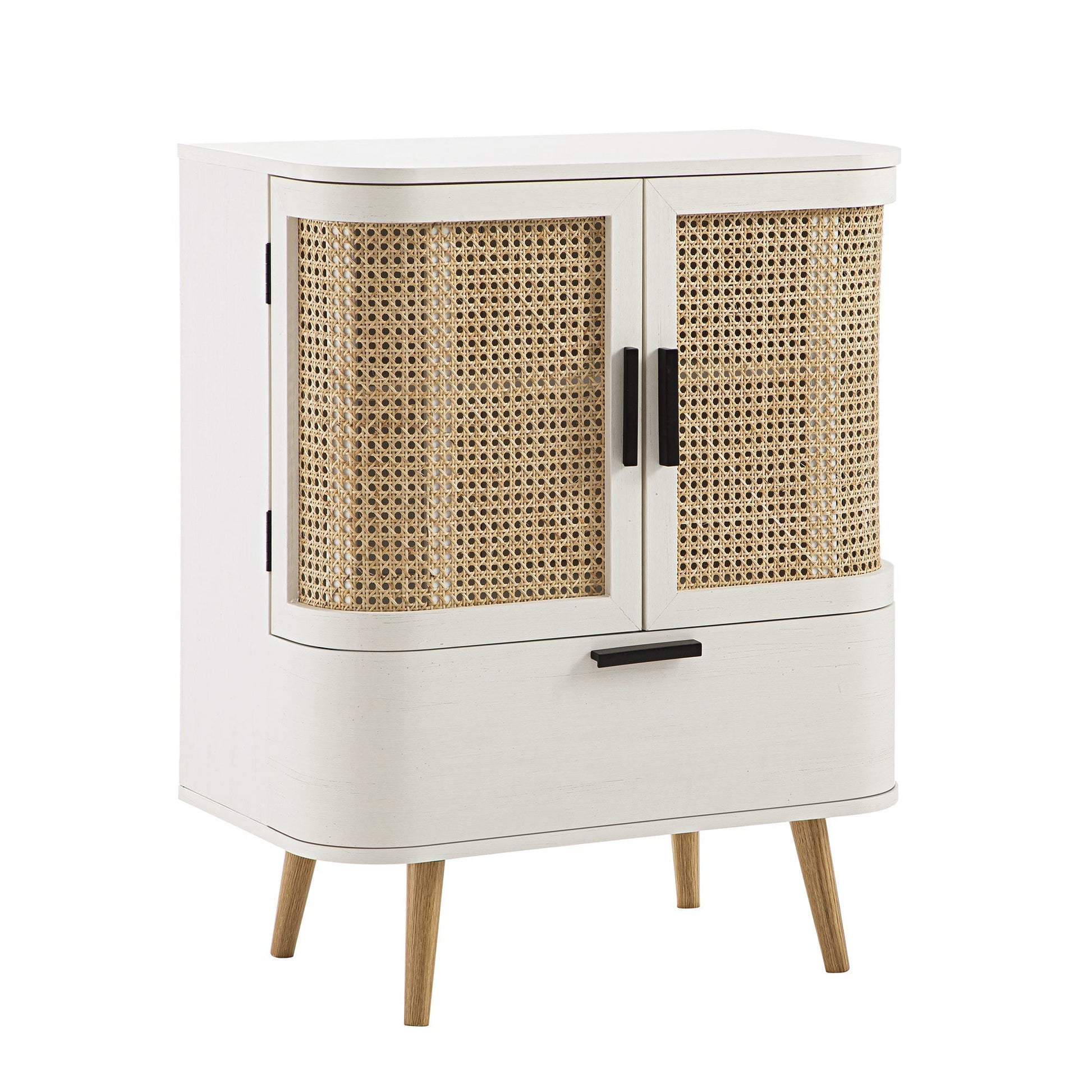 Frais, léger et plein de texture, le petit buffet incurvé en rotin Izzy en blanc apporte une élégance décontractée à n'importe quel coin de votre maison.