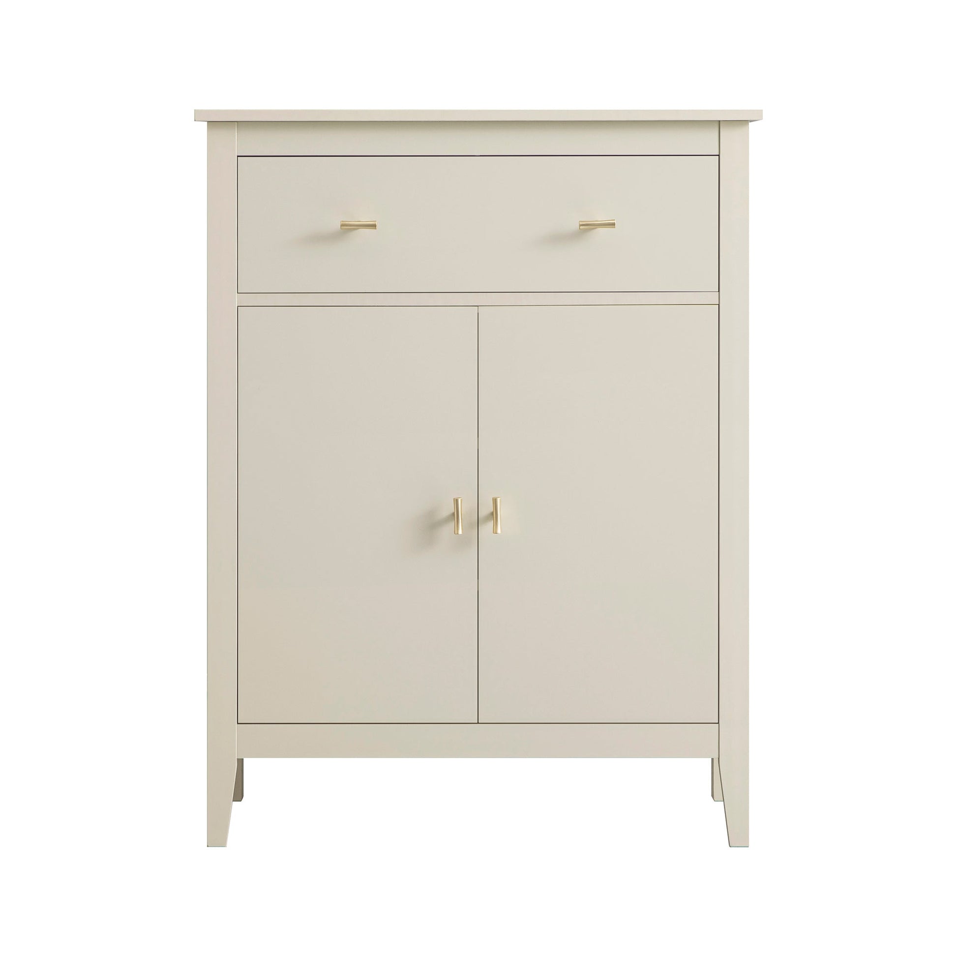 La conception associe un tiroir supérieur idéal pour le linge de maison, les couverts ou les bibelots qui méritent leur propre place, avec une armoire à deux portes en dessous, dotée d'étagères réglables pour s'adapter à vos besoins de rangement.