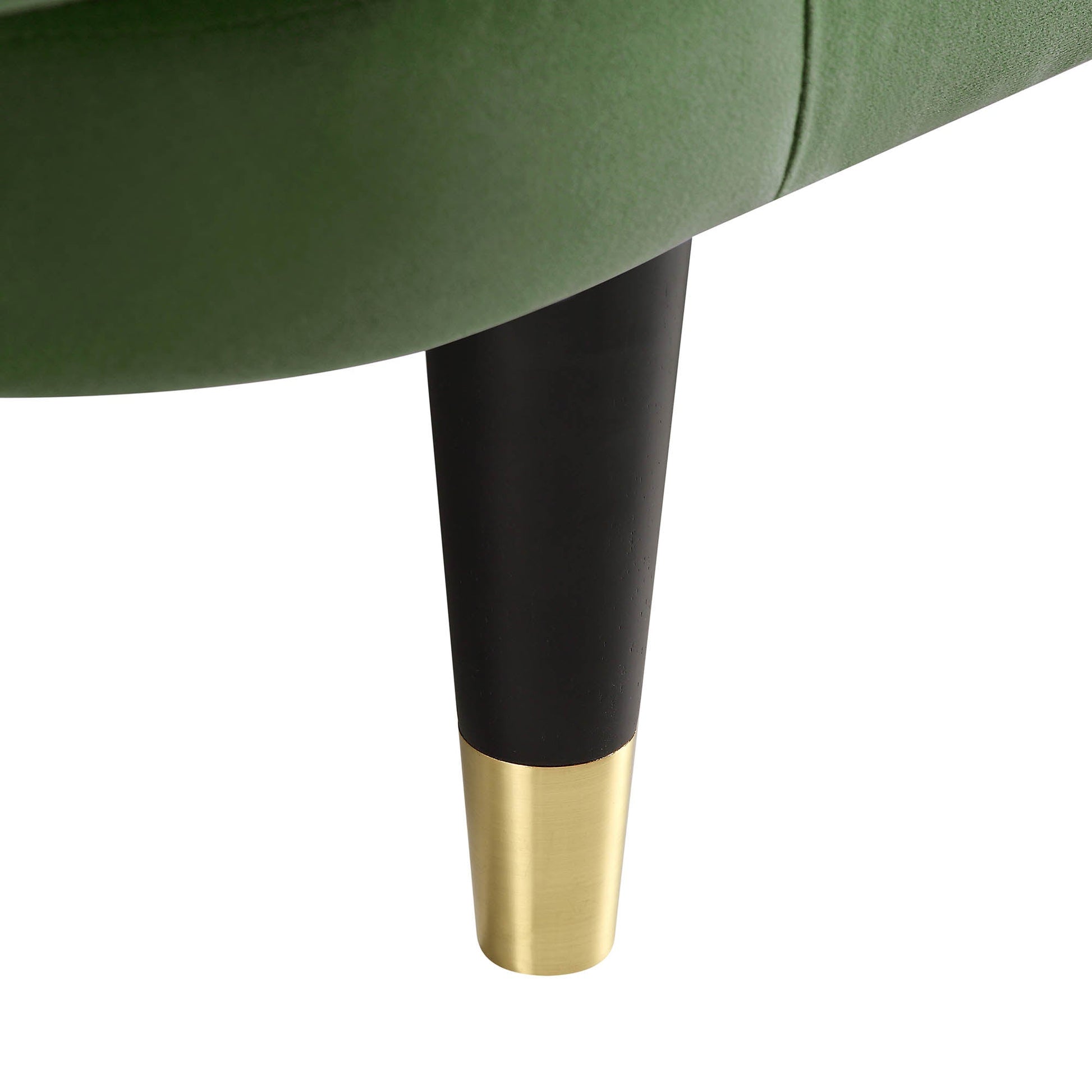Recouvert de velours doux de couleur vert mousse, notre canapé-lit Solna est soutenu par un cadre interne en bois massif, accentué de pieds en bois noir à pointes en laiton pour un look du milieu du siècle.