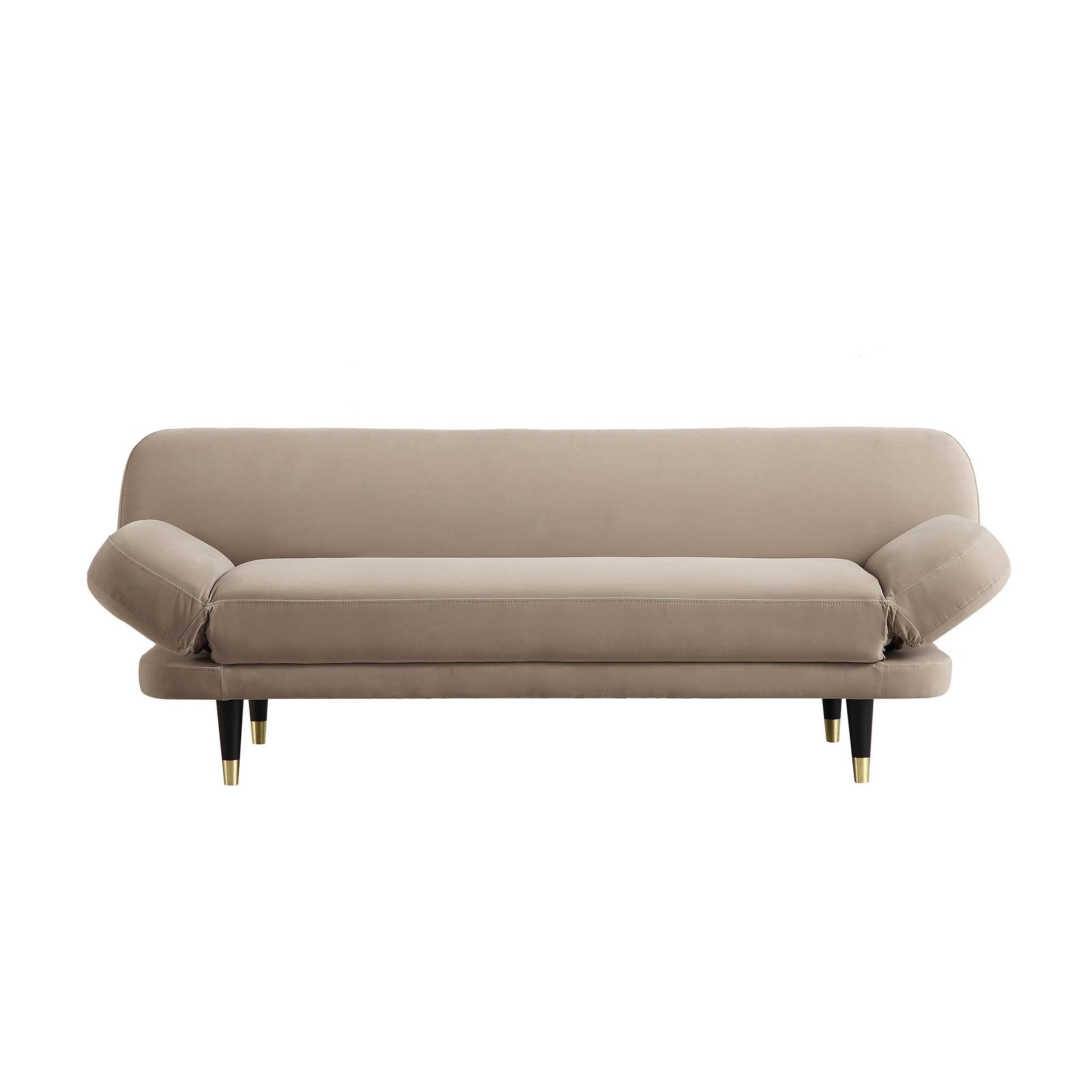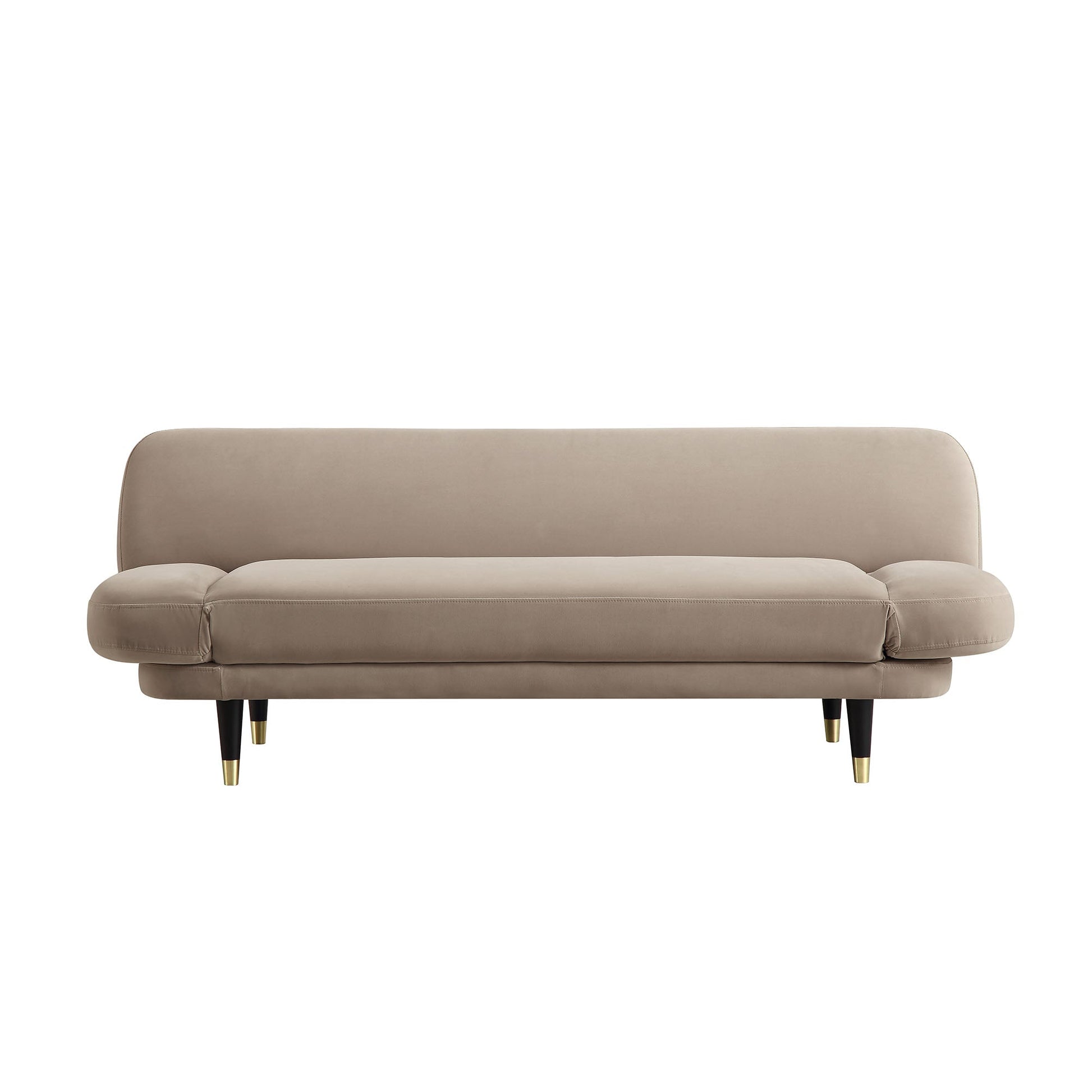 Recouvert d'un somptueux tissu au toucher velours couleur vison, notre canapé-lit Solna est soutenu par un cadre interne en bois massif, accentué de pieds en bois noir à pointes en laiton pour un look du milieu du siècle.
