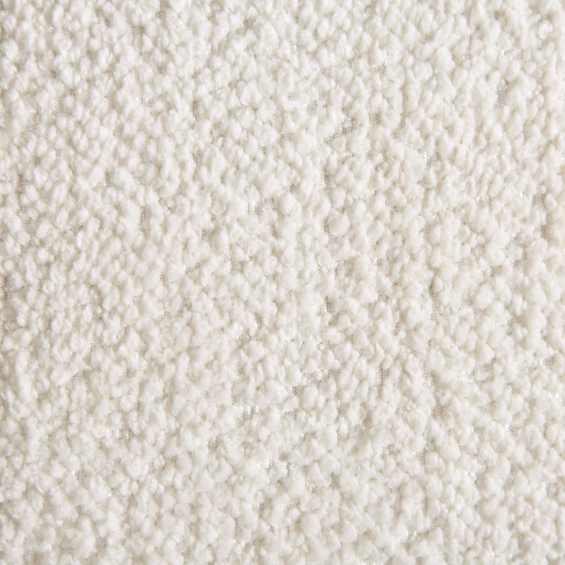 • Tissu bouclé beige tactile associé à une base en bois massif dans une teinte naturelle mate pour un look chaleureux et agréable à l'œil
