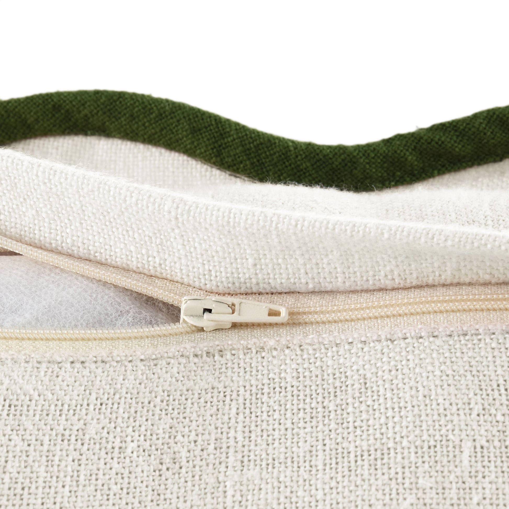 Doté d'une bordure festonnée contrastante en vert cèdre, ce coussin est un choix chic pour un style facile.