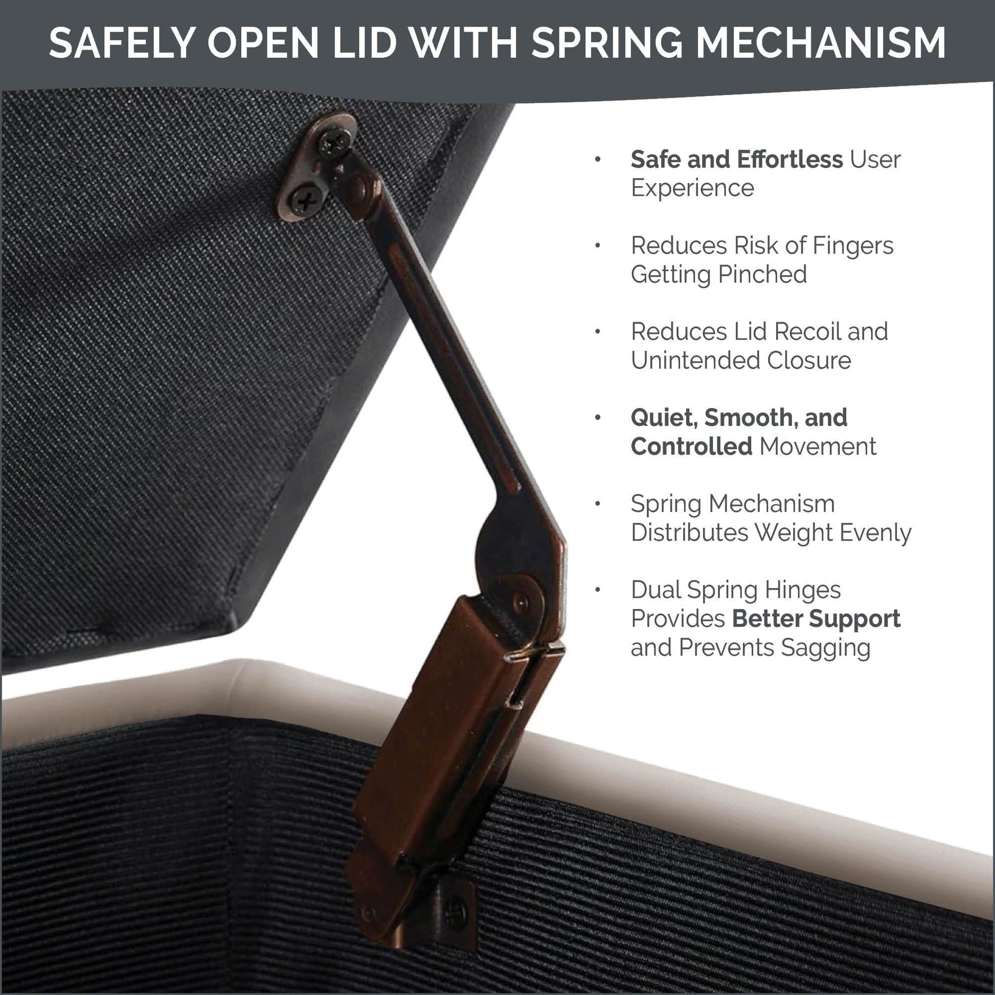 • Construction de qualité avec couvercle et côtés rembourrés, pieds en bois massif et mouvement silencieux, fluide et contrôlé grâce à des charnières à ressort.