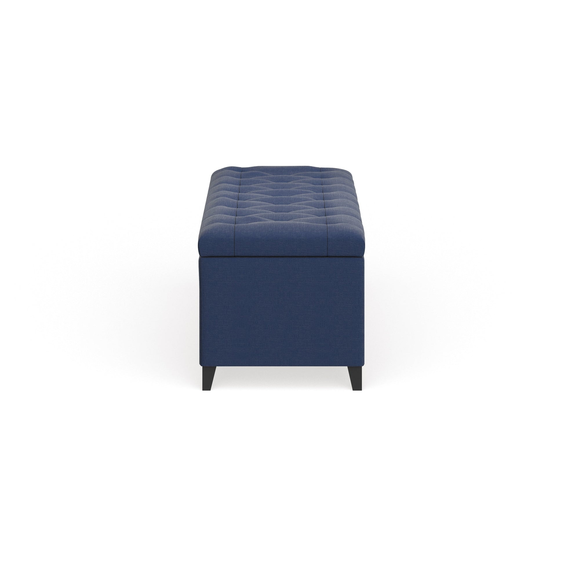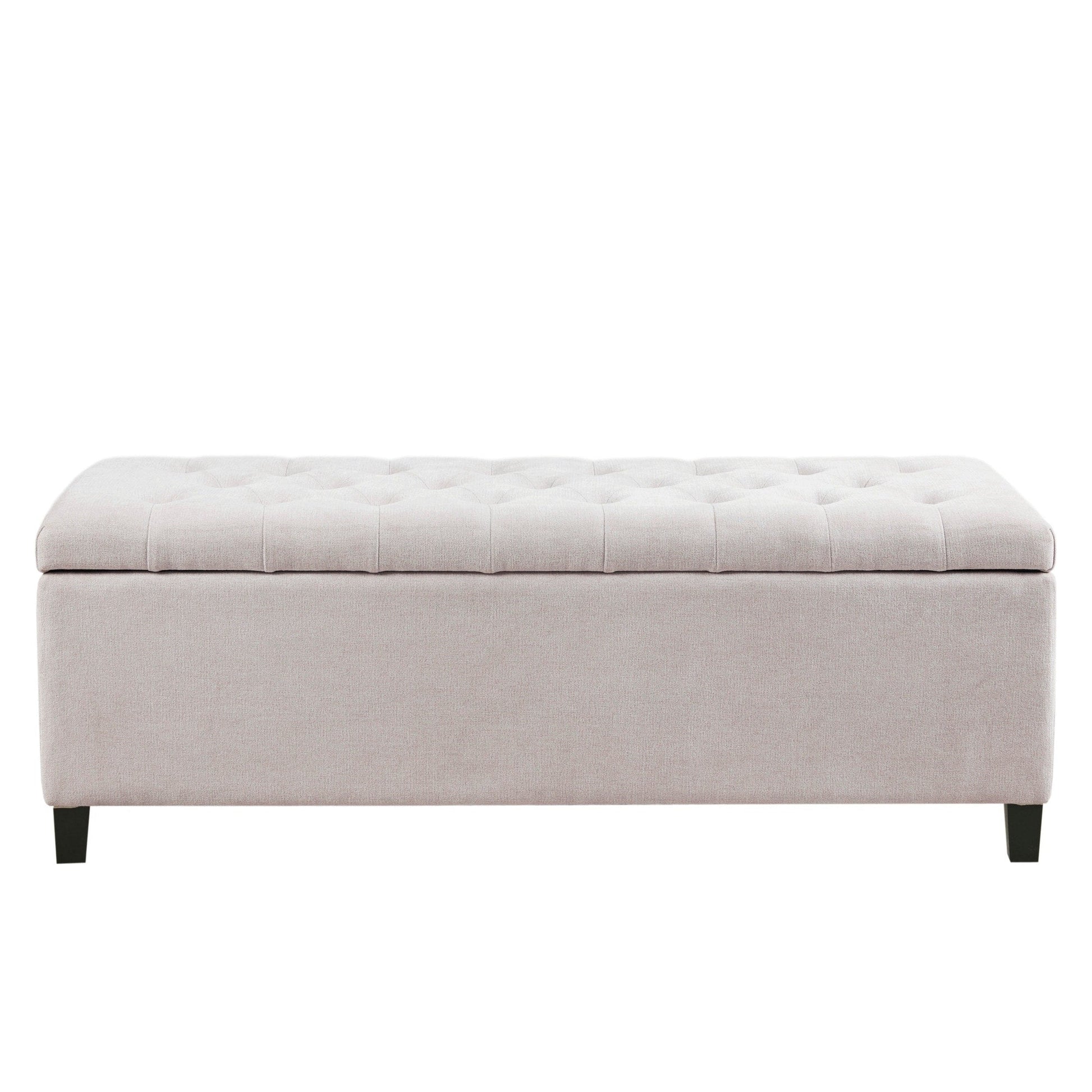 Le banc de rangement capitonné Madison Park Shandra allie style et fonctionnalité grâce à son assise capitonnée et son compartiment intérieur spacieux (113 cm L x 38 cm P x 28 cm H) offrant un espace de rangement discret. Idéal pour les entrées, les chambres, les salons, les chambres d'enfants et les petits espaces, il offre à la fois une assise et un espace de rangement. Deux mécanismes à ressort, un à chaque extrémité, assurent une ouverture et une fermeture silencieuses et fluides, évitant les claquements et renforçant la durabilité. Revêtu d'un tissu doux et résistant, il est doté d'un couvercle rembourré, de pieds en bois massif et d'une construction robuste. Montage facile : il suffit de fixer les pieds. Ajoutez ce banc polyvalent à votre intérieur dès aujourd'hui !