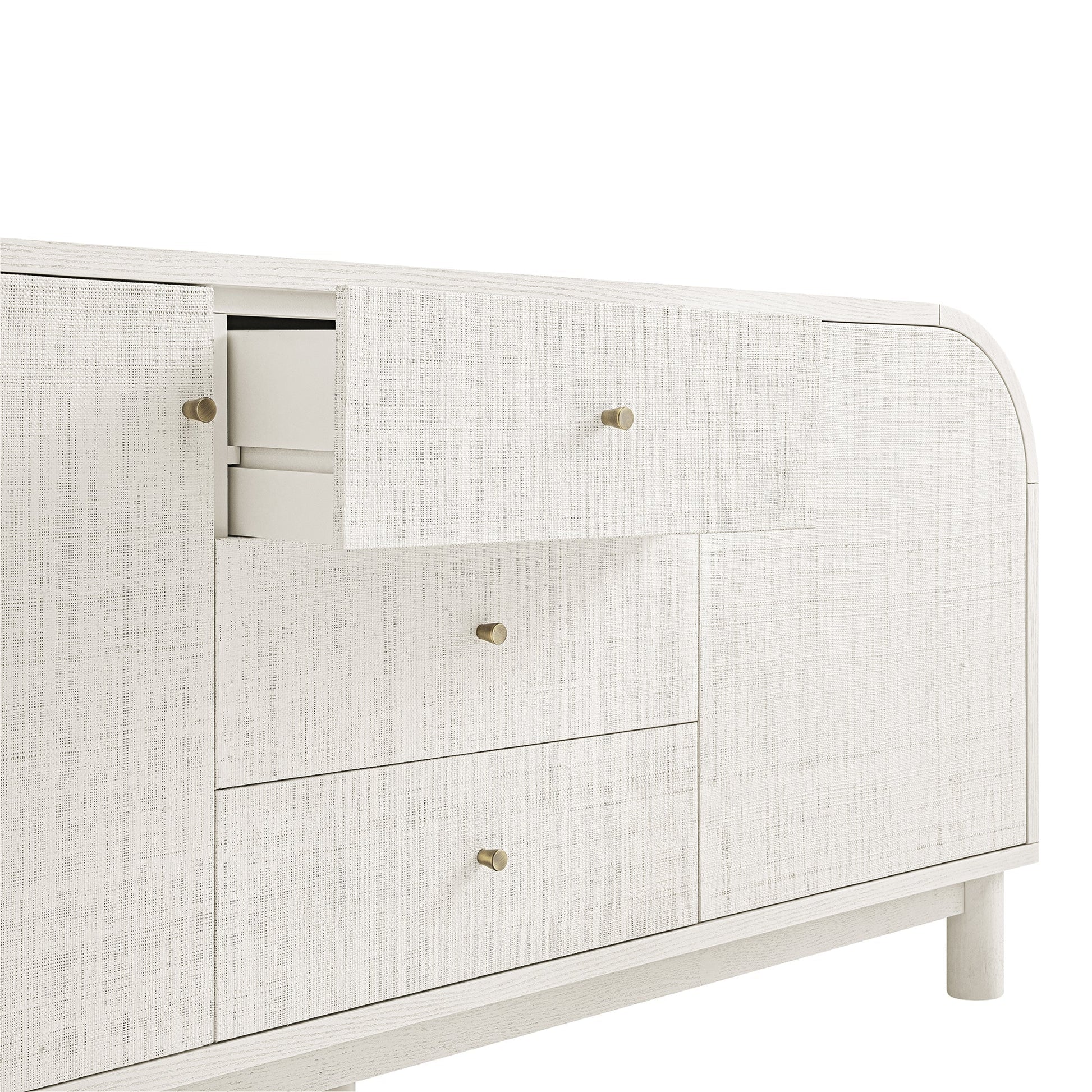 Les tiroirs à façade en raphia blanc créent un attrait doux et aéré avec une belle texture naturelle.