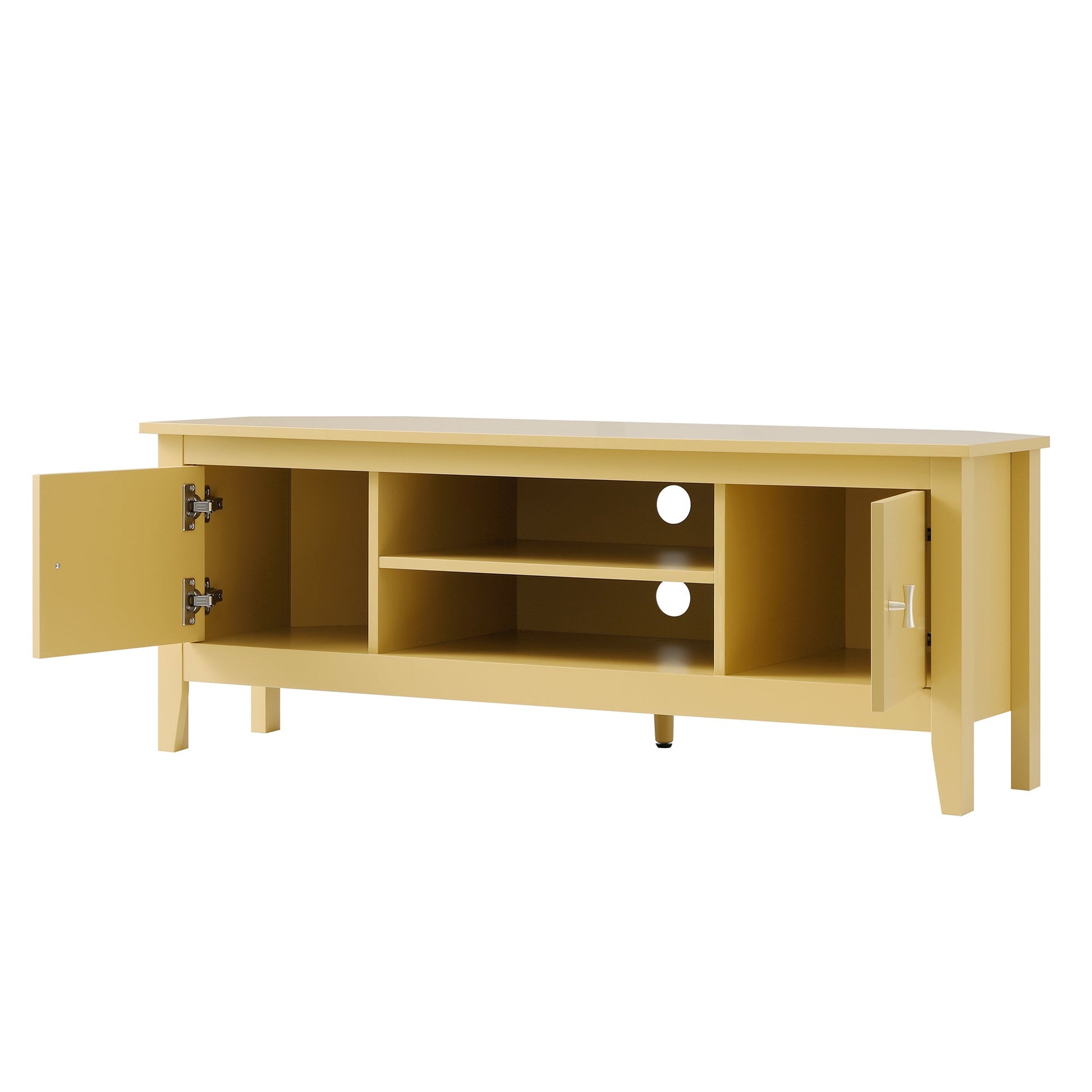 • Deux placards et une étagère centrale ouverte avec découpes pour câbles à l'arrière offrent de l'espace pour des consoles, des boîtes ou des accents décoratifs.