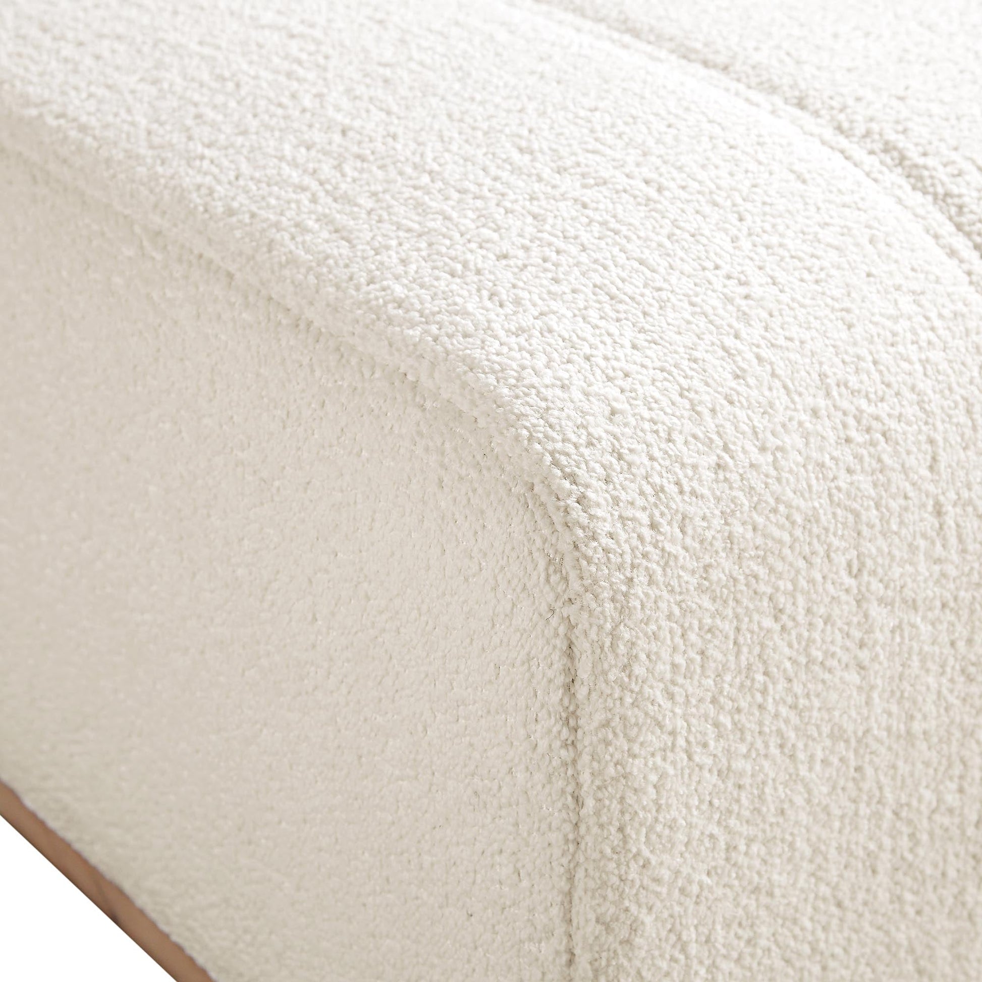 • Tissu bouclé beige tactile associé à une base en bois massif dans une teinte naturelle mate pour un look chaleureux et agréable à l'œil