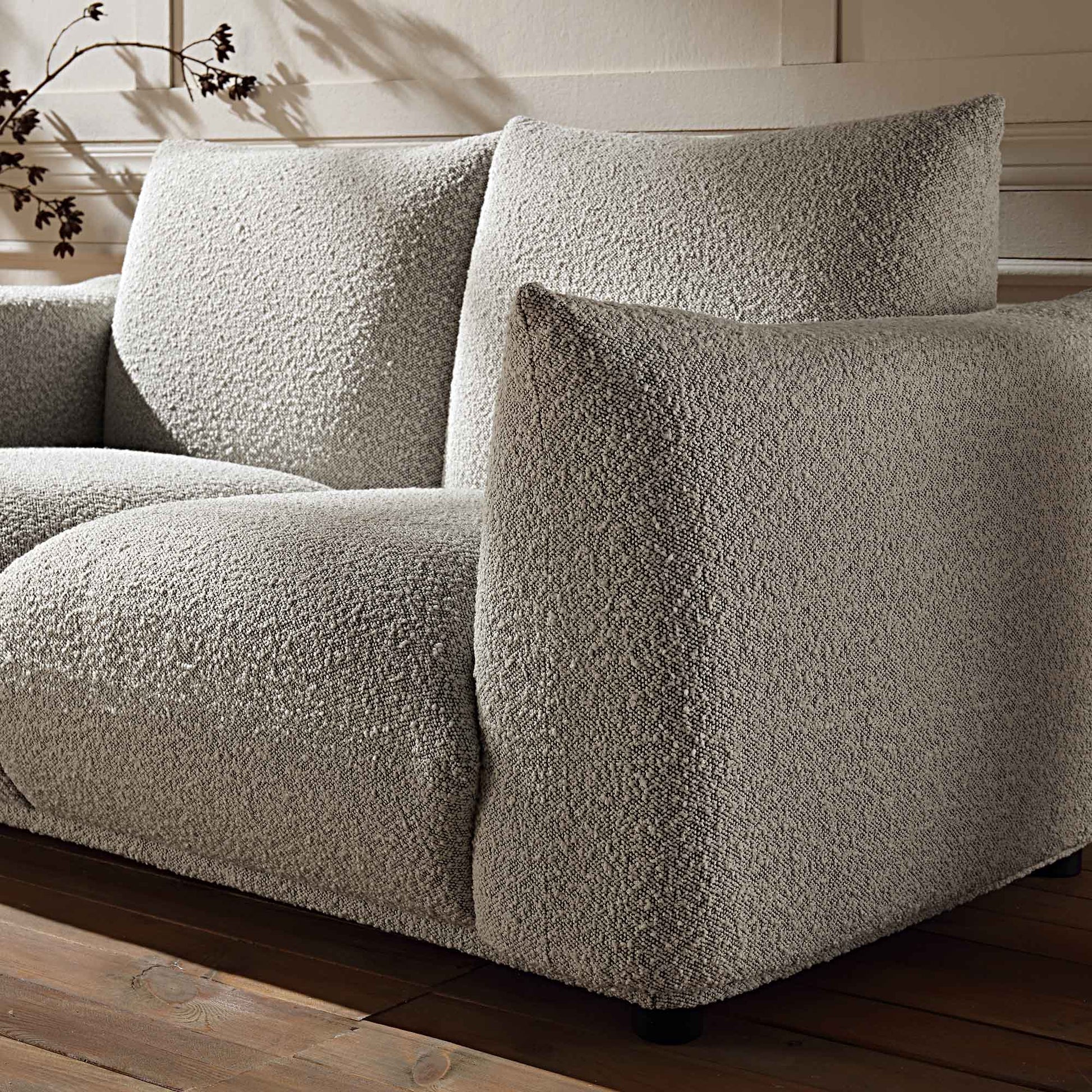 • Recouvert d'un tissu bouclé gris brume chic pour un look contemporain.
