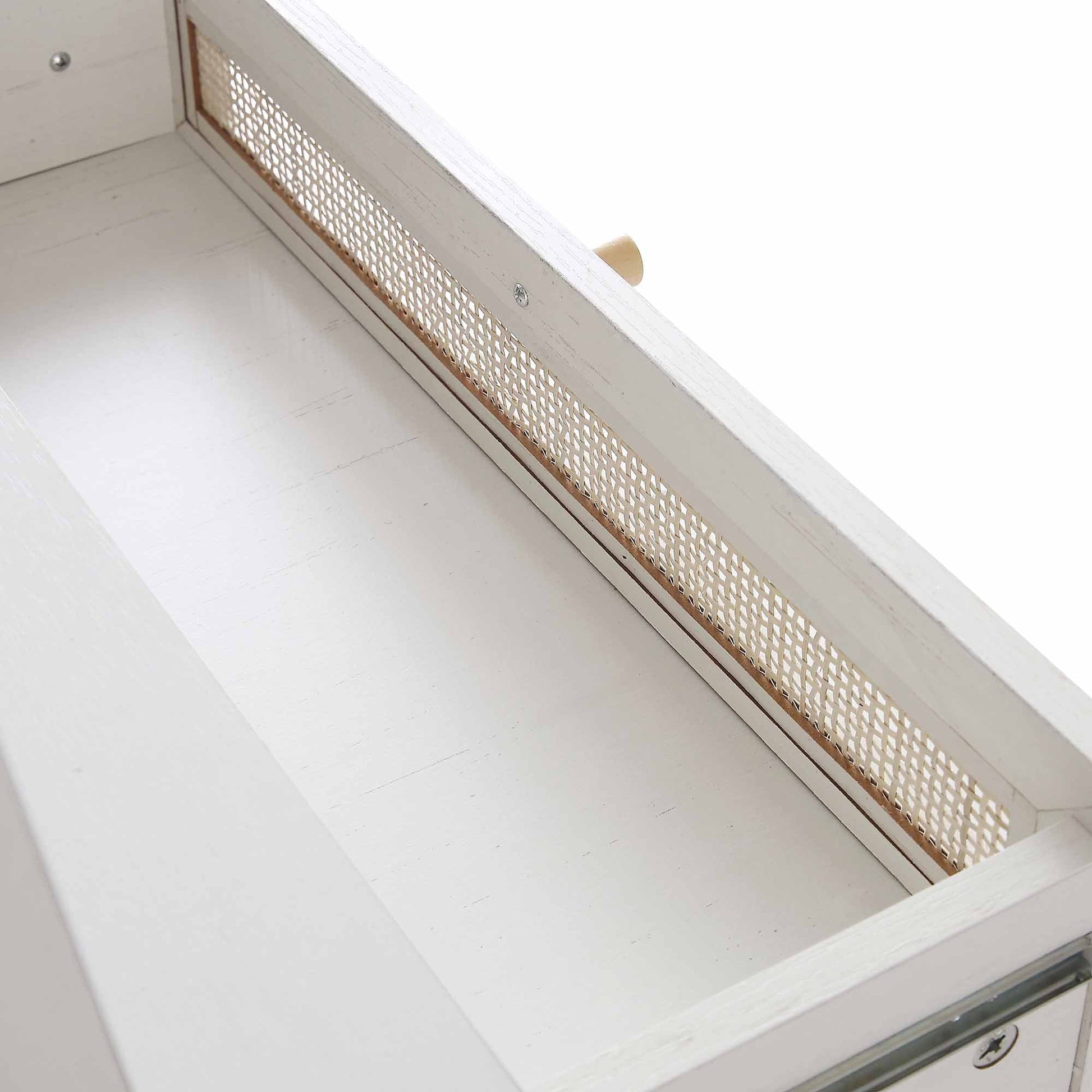 Coiffeuse sur pied en rotin tressé Frances avec miroir, blanche