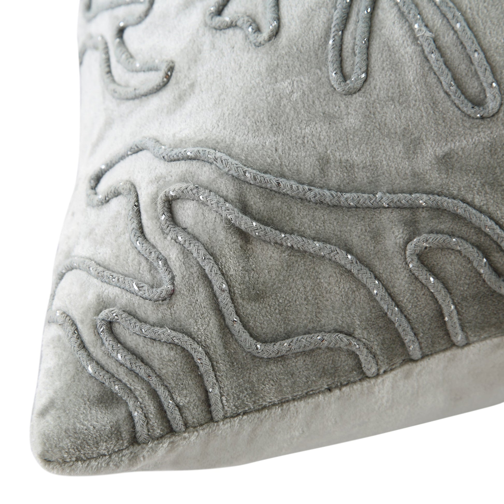 L'oreiller Wiggle a été fabriqué à partir d'un somptueux velours 100 % coton argenté et joliment orné d'un cordon scintillant avec des taches argentées métalliques, ce qui en fait la solution parfaite pour une décoration glamour.