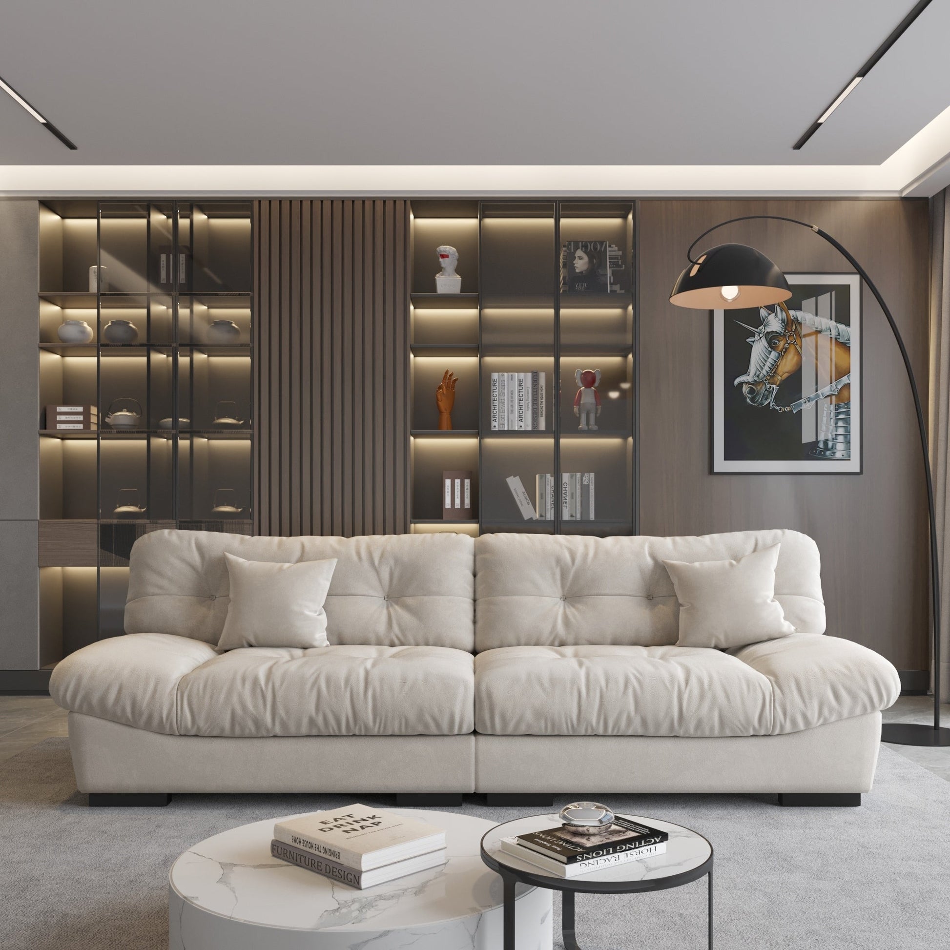 L'incarnation du confort et du luxe pour votre salon ! Ce canapé design n'est pas un simple canapé : c'est un véritable havre de paix qui sublimera votre détente. Avec ses assises profondes et moelleuses et ses dossiers confortables, le Cloud Sofa est conçu pour vous offrir, à vous et à vos proches, un confort inégalé. Mesurant 2,60 mètres de long, ce canapé est suffisamment spacieux pour accueillir confortablement trois personnes, ce qui en fait la pièce maîtresse idéale de votre salon ou de votre espace détente. Mais le Cloud Sofa ne se limite pas à s'asseoir : il est si confortable qu'il peut également servir de lit ! Que vous souhaitiez faire une petite sieste ou recevoir un invité pour la nuit, ce canapé se transforme facilement en un espace de couchage douillet.