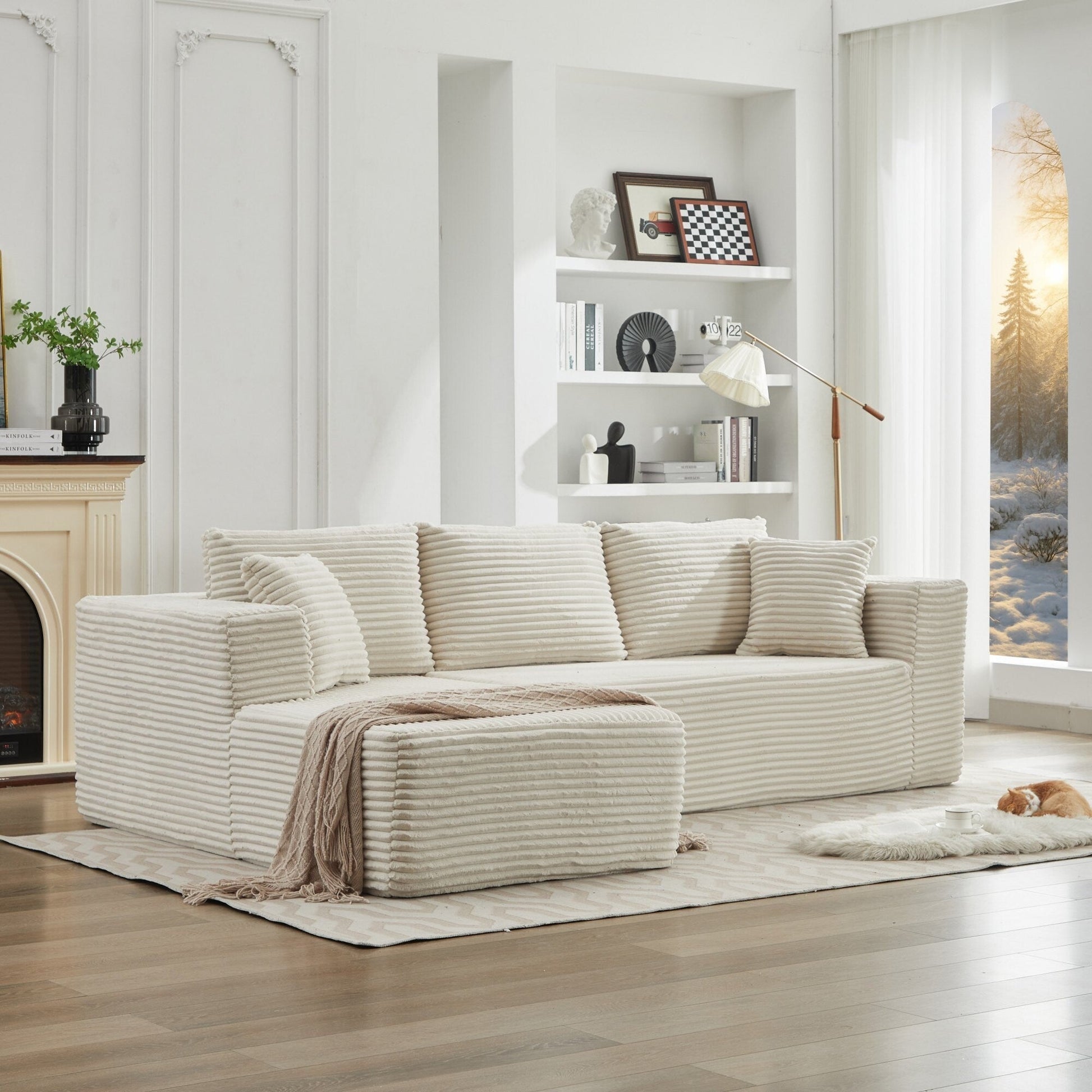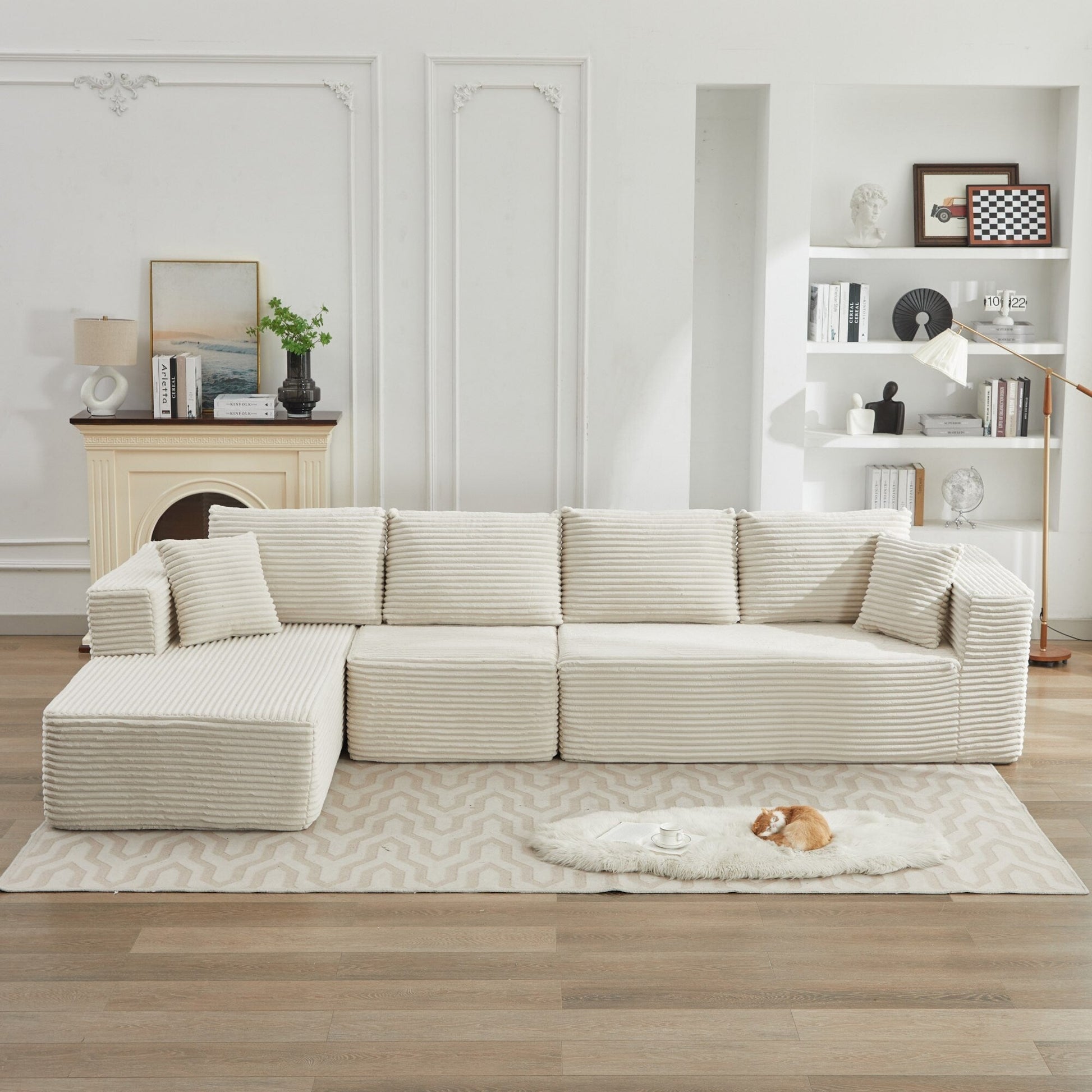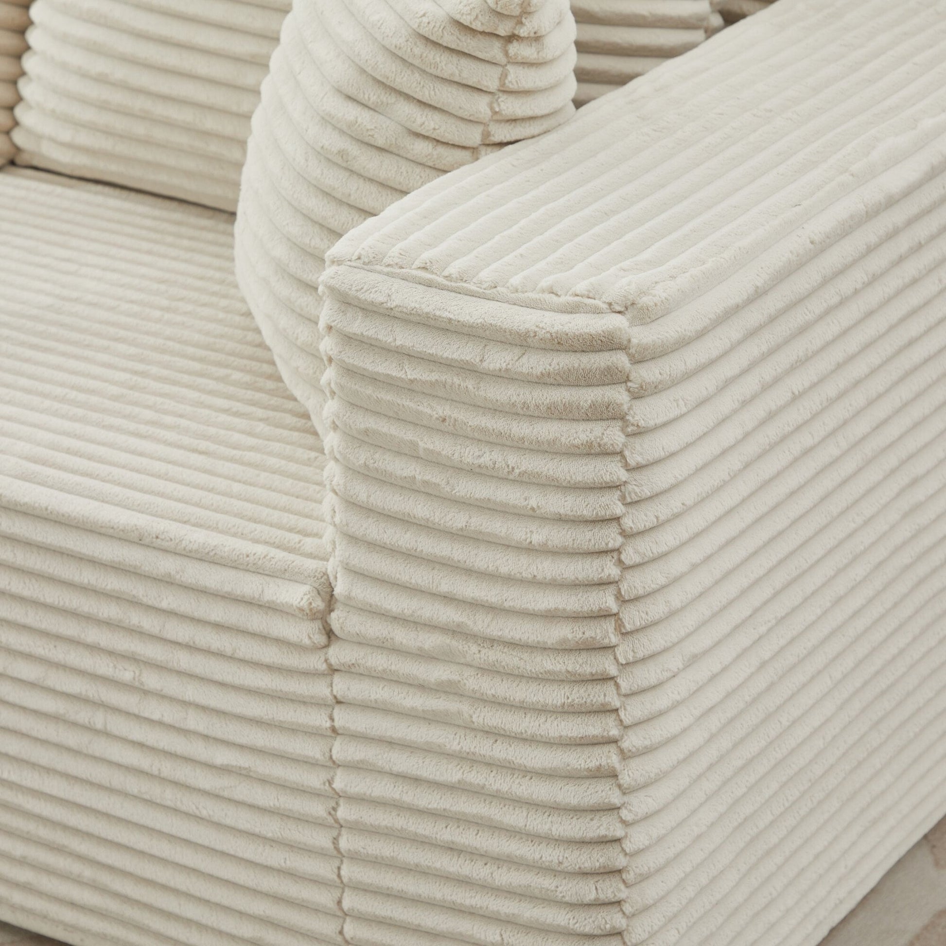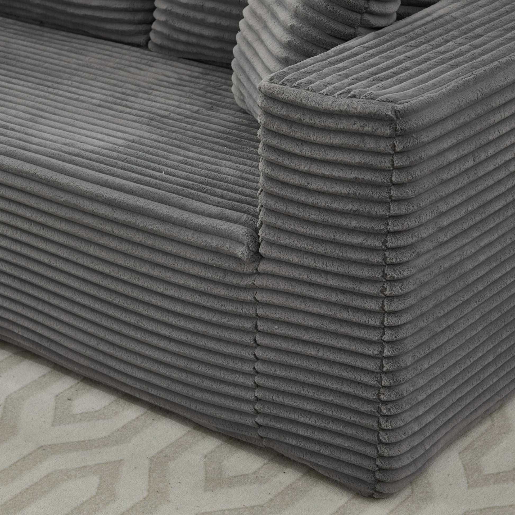 Canapé d'angle modulable : Ce canapé d'angle en L est particulièrement polyvalent. Conçu pour être extrêmement flexible, il s'adapte parfaitement à votre espace. Minimaliste, ce canapé en L optimise l'espace lorsqu'il est placé contre un mur. Composé de deux éléments élégants, cet ensemble de salon vous invite à personnaliser votre confort et votre style. Aucun assemblage requis : Oubliez les tracas d'installation de meubles grâce à notre canapé nuage modulaire. Déballez simplement toutes les pièces et tapotez légèrement chaque segment pour renforcer son élasticité et son moelleux, lui redonnant ainsi toute sa splendeur photogénique. En quelques instants, votre confortable canapé nuage est prêt à être utilisé et vous offrira un confort absolu en 72 heures. Tissu velours côtelé moelleux : Notre canapé est enveloppé de velours côtelé de qualité supérieure, offrant une douceur et une chaleur incomparables. Ce matériau amélioré offre une meilleure respirabilité et une meilleure résistance aux taches, ce qui le rend facile à entretenir et à nettoyer. Sa texture unique et son doux éclat le rendent unique, vous offrant un moment de détente en toute saison. Ensemble de canapés de salon flexible et polyvalent : Parfait pour les salons, les appartements, les chambres, les chambres d'amis et les aires de jeux pour enfants, notre ensemble de canapés de sol polyvalent offre de multiples fonctions et encourage les enfants à jouer sur sa surface luxueuse. Sa conception modulaire facilite la navigation dans les couloirs étroits et les entrées exiguës, assurant une utilisation optimale de l'espace. Fini les soucis de déménagement : chaque pièce est déplaçable indépendamment.