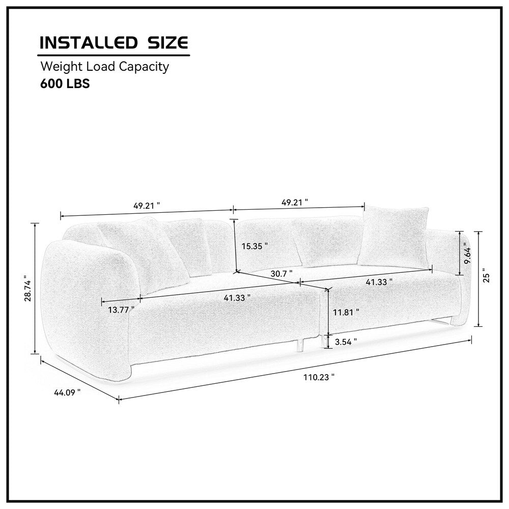 Taille du produit : ce canapé pour le salon mesure 110,23'P x 44,09'L x 28,97'H, sa taille spacieuse est idéale pour les grandes familles et les invités de réception, son design élégant est idéal pour diverses applications telles que les appartements, les salons et les clubs.