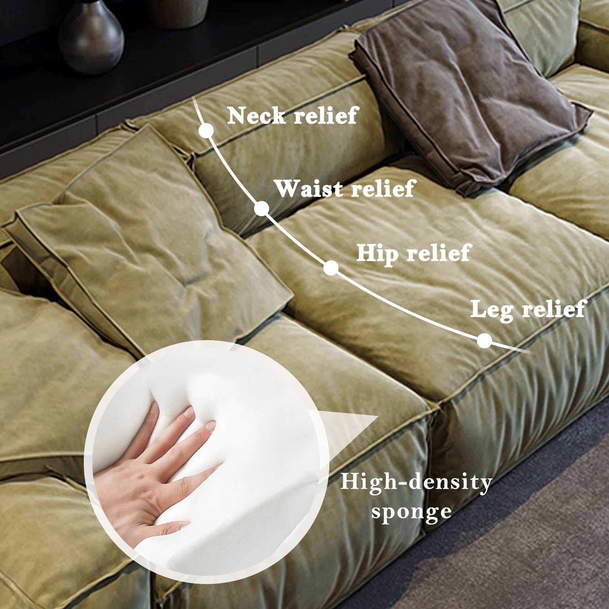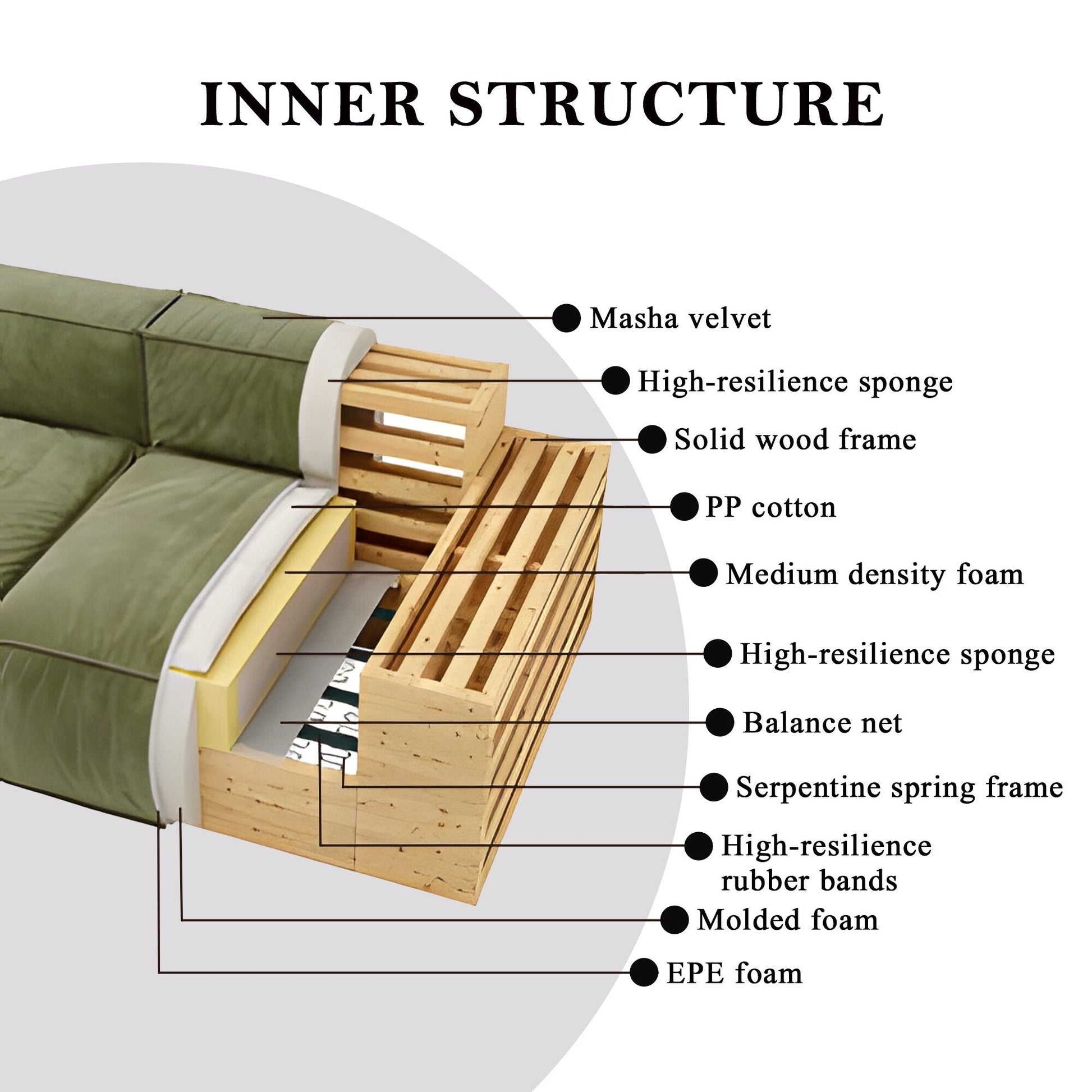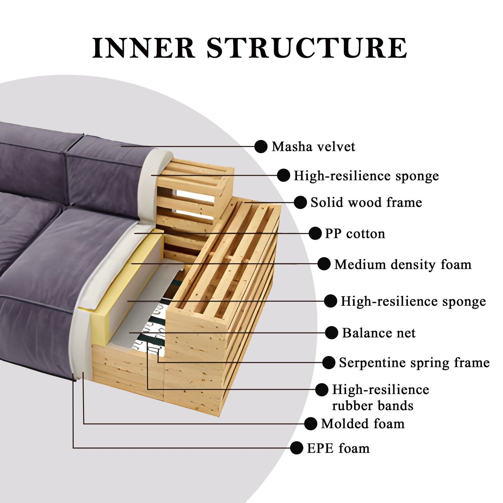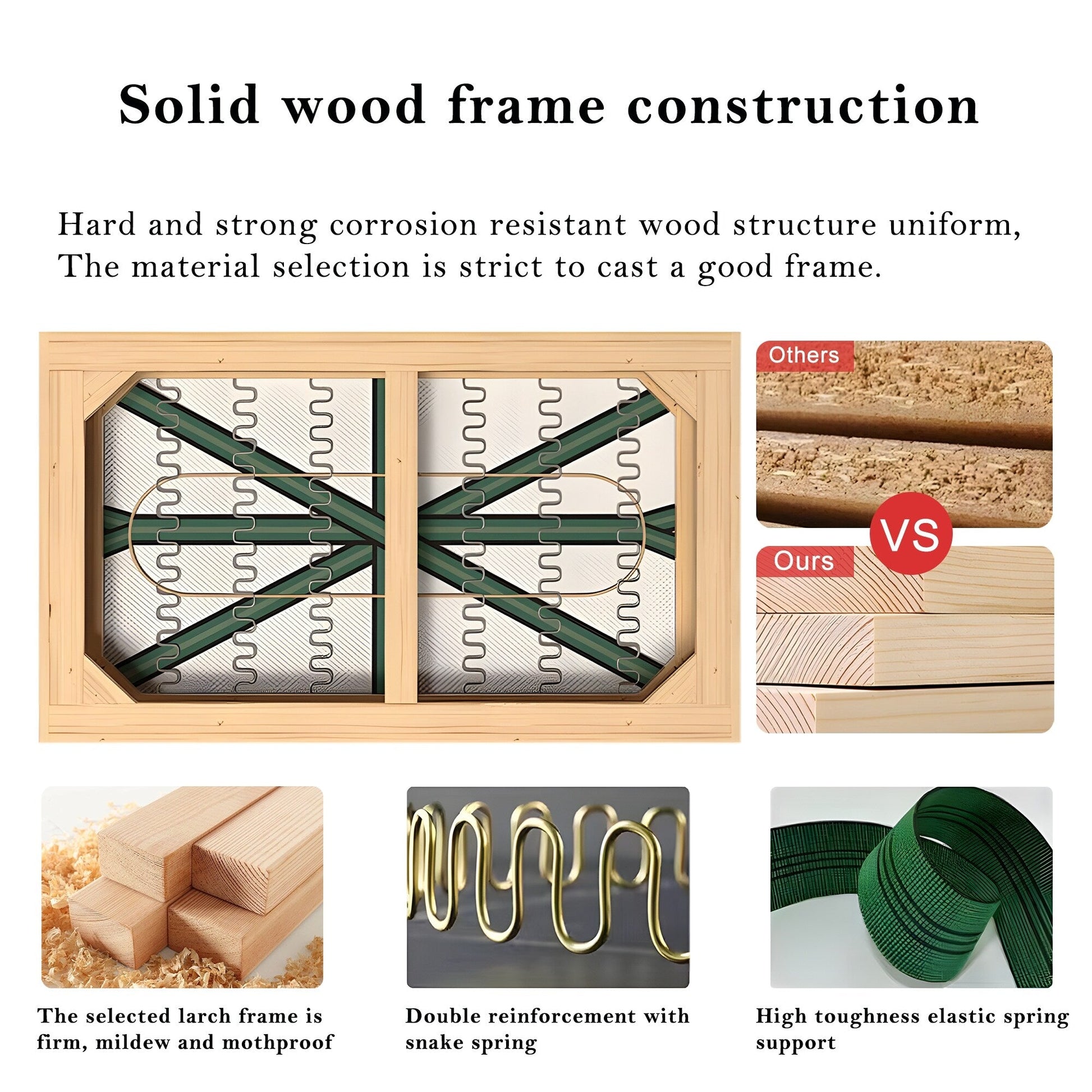 CADRE EN BOIS MASSIF ROBUSTE : Le cadre du canapé est fait d'une structure en bois massif solide, qui est finement traitée et strictement inspectée pour offrir une excellente capacité de charge et stabilité, garantissant la sécurité et la durabilité du canapé en cours d'utilisation, afin que vous et votre famille puissiez l'utiliser en toute tranquillité d'esprit.