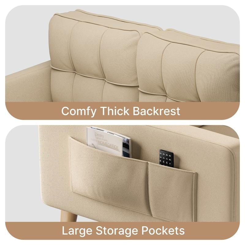 Ce canapé est ultra-confortable et moelleux. Il est composé d'une éponge hautement élastique et de pieds en bois robustes. Ses pieds en bois robustes, son lin respirant garni d'éponge de haute qualité, son dossier et son coussin fermes et confortables offrent non seulement une expérience d'utilisation confortable et moelleuse, mais sont également très faciles à nettoyer, à entretenir et durables.