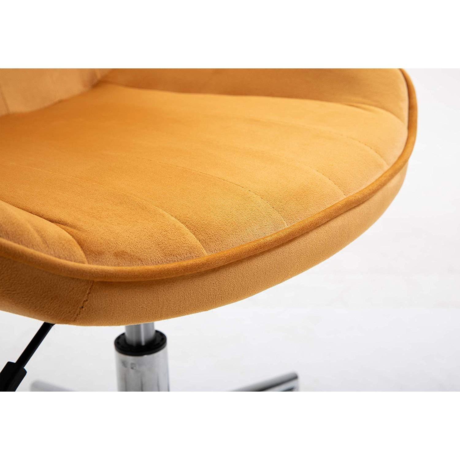 • Avec un superbe revêtement en velours couleur moutarde et des pieds chromés élégants, cette chaise pivotante apportera une touche de style à votre bureau/espace d'étude.