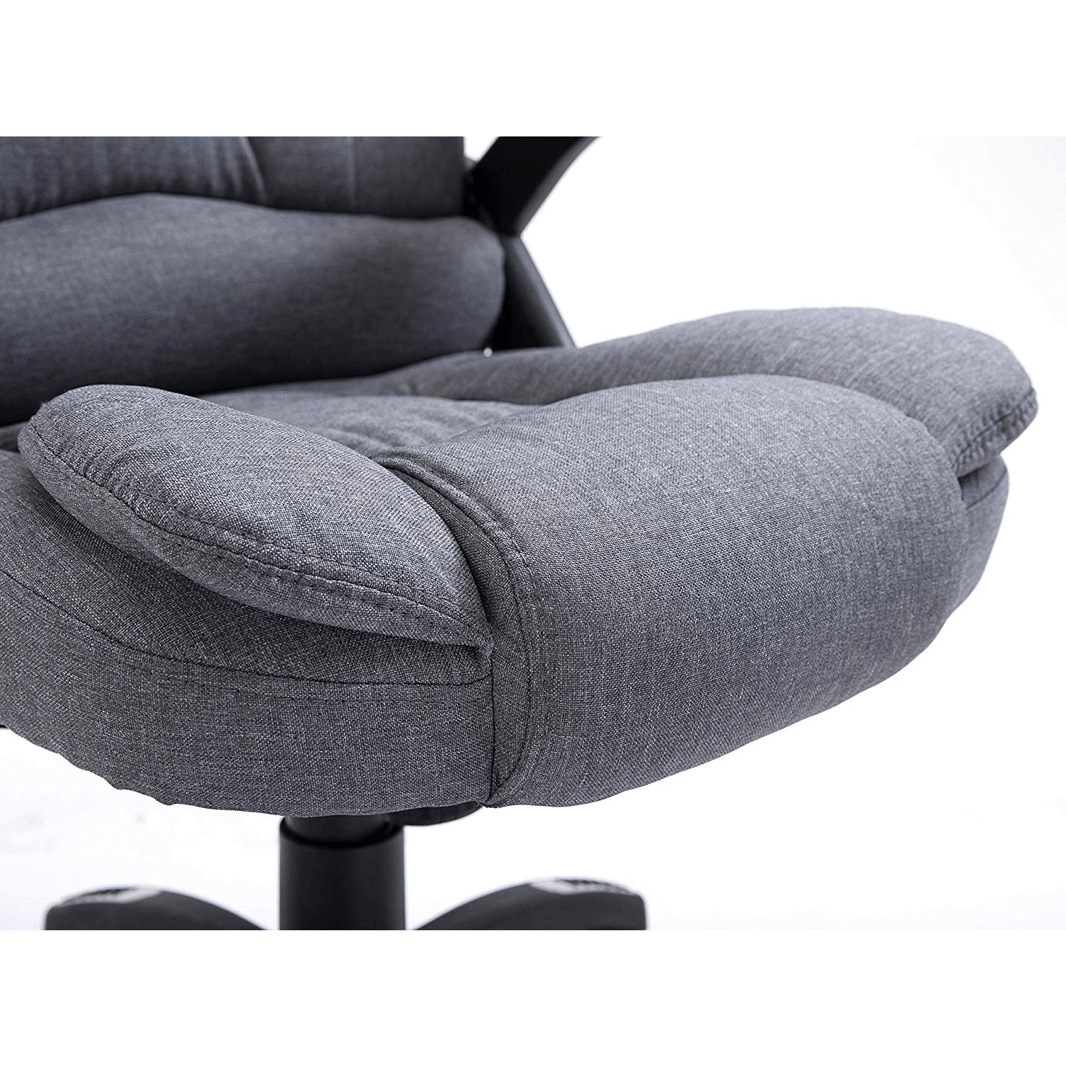 Revêtement en tissu gris confortable avec rembourrage moelleux pour un confort optimal. Dossier réglable et verrouillable en inclinaison. Roulettes robustes pivotant à 360°.