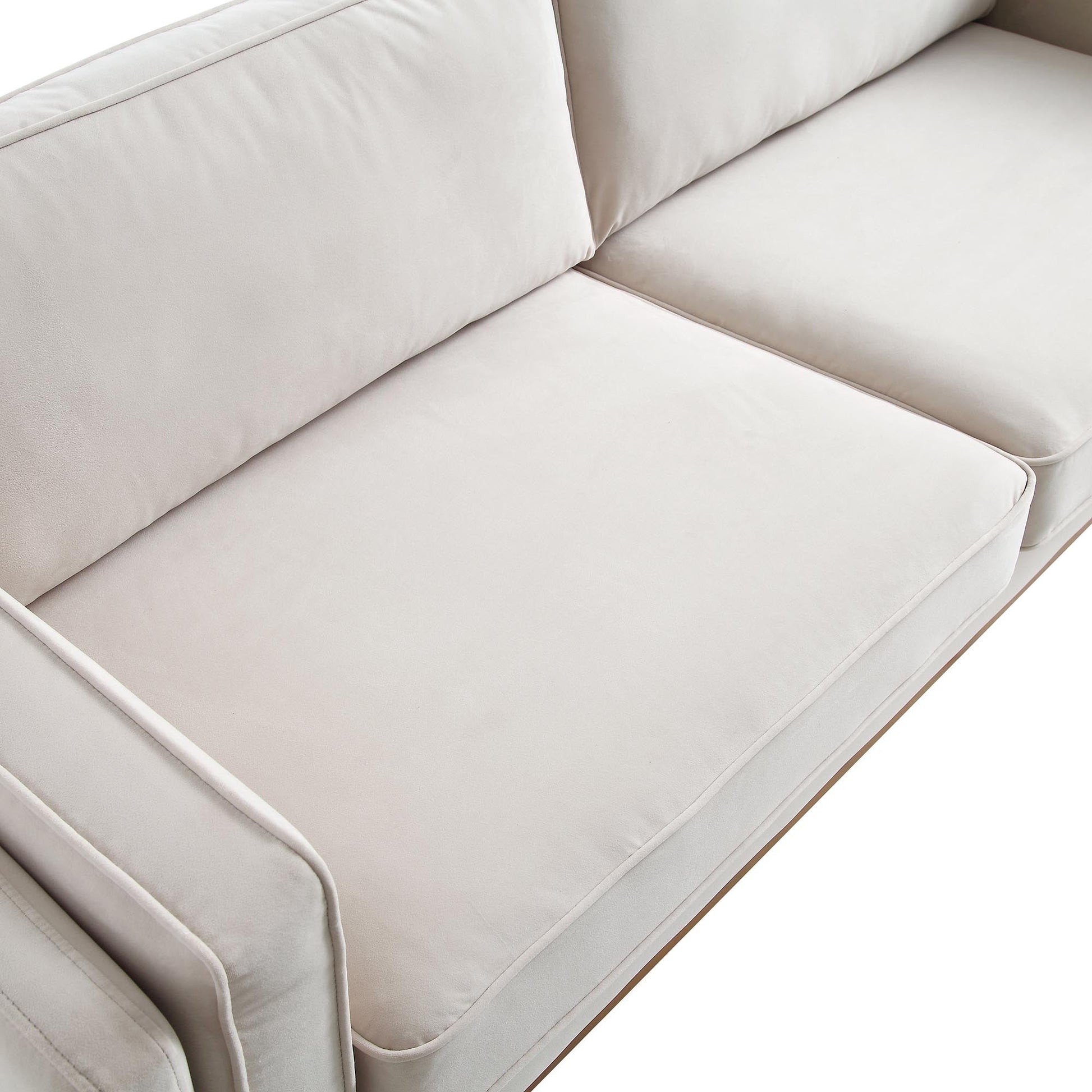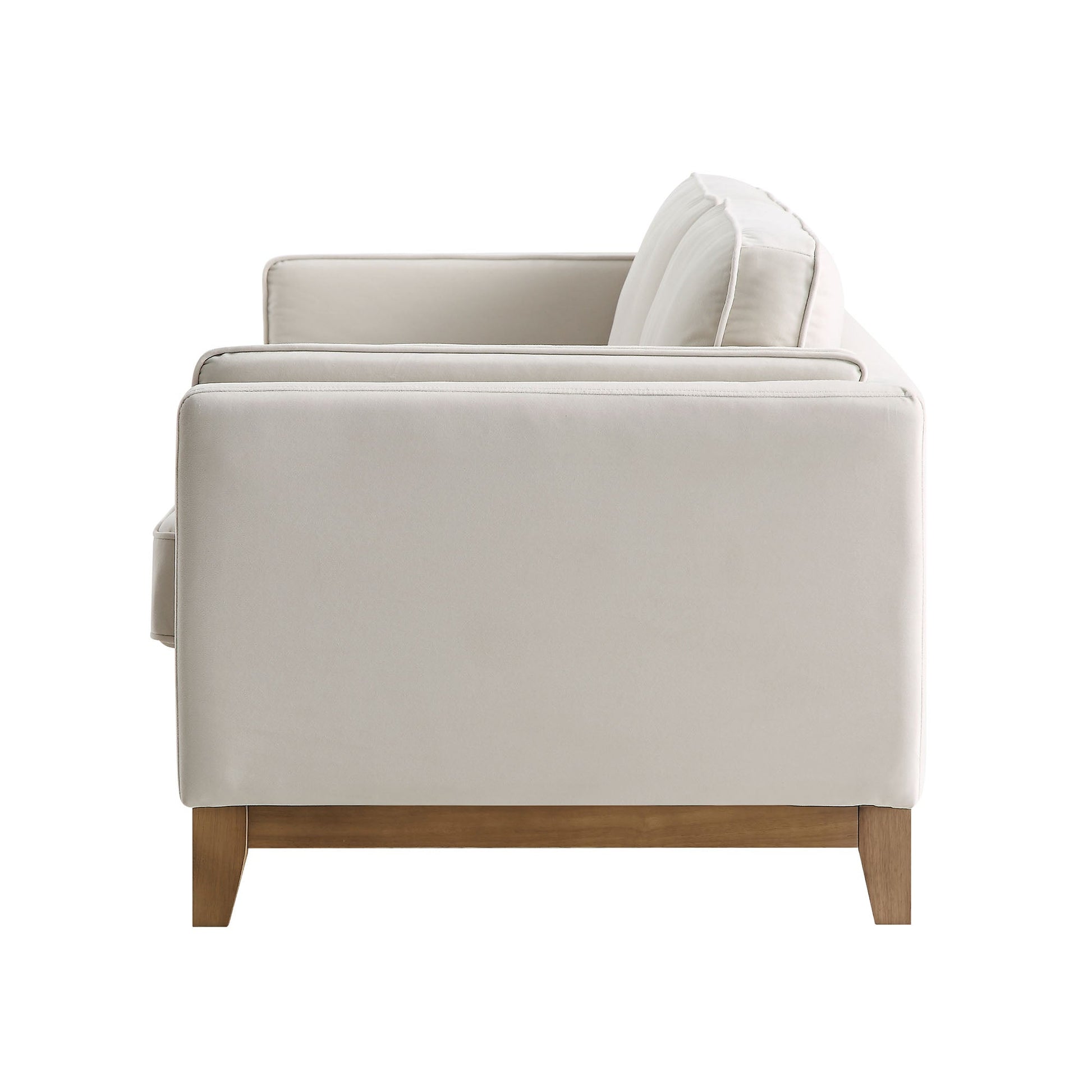 Conçu avec des accoudoirs droits et une base en bois massif, le canapé est doté de coussins d'assise composés de ressorts et de mousse pour un espace de détente confortable.