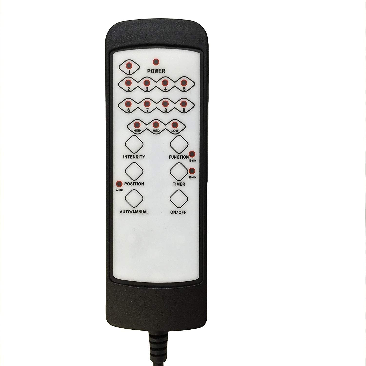 Fauteuil de massage vibrant multifonction 6 points avec télécommande. Masse le haut et le bas du dos ainsi que les cuisses, avec plusieurs niveaux d'intensité disponibles.