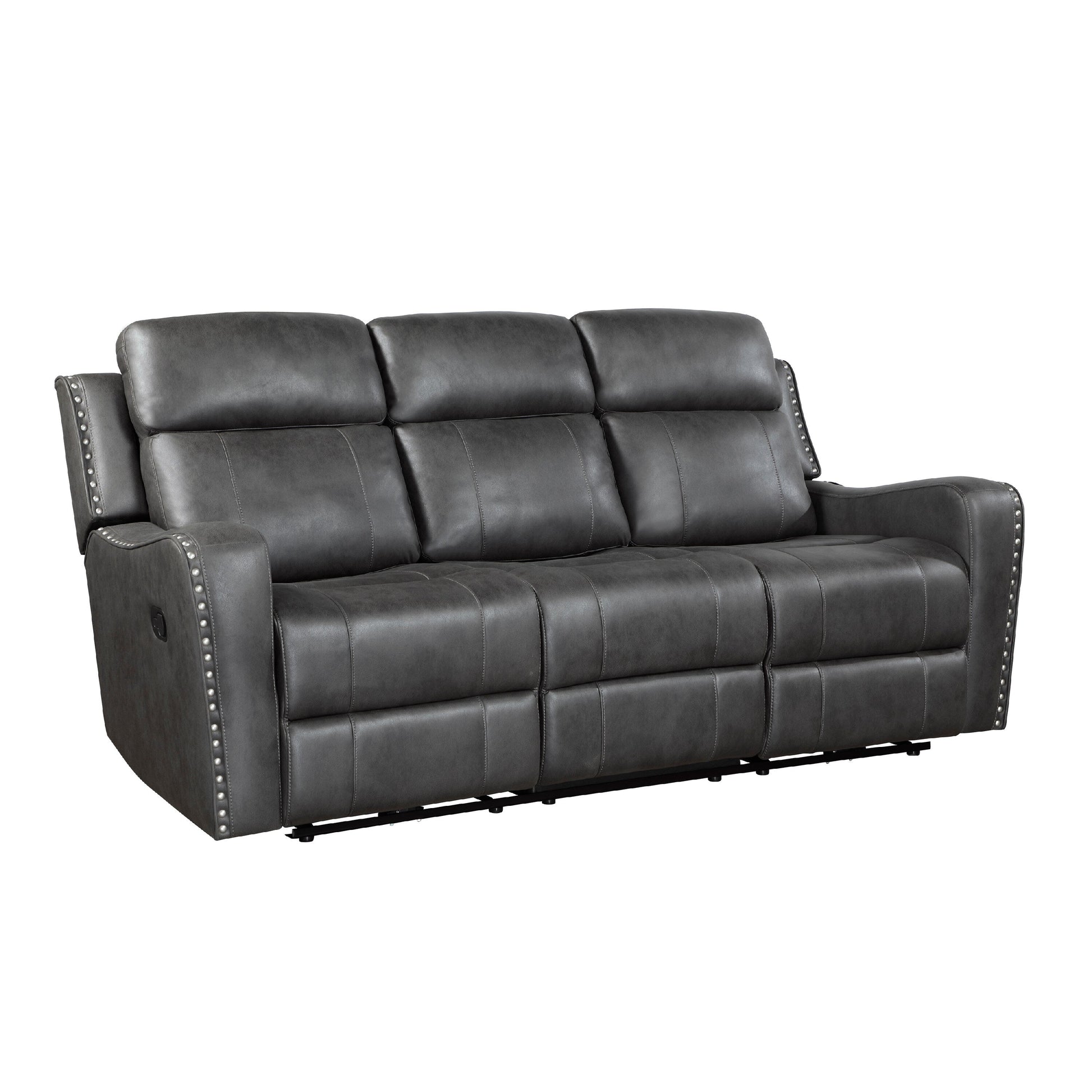 Détendez-vous dans un confort raffiné grâce à ce canapé inclinable double. Fabriqué avec soin avec une structure en bois massif et contreplaqué, il est doté d'un coussin d'assise en mousse haute densité gainée de Dacron et d'un revêtement en microfibre polie finition gris foncé. Doté d'un mécanisme d'inclinaison à poignée et d'une élégante garniture cloutée, ce canapé allie style et soutien. Découvrez notre collection Gimo pour plus d'options.