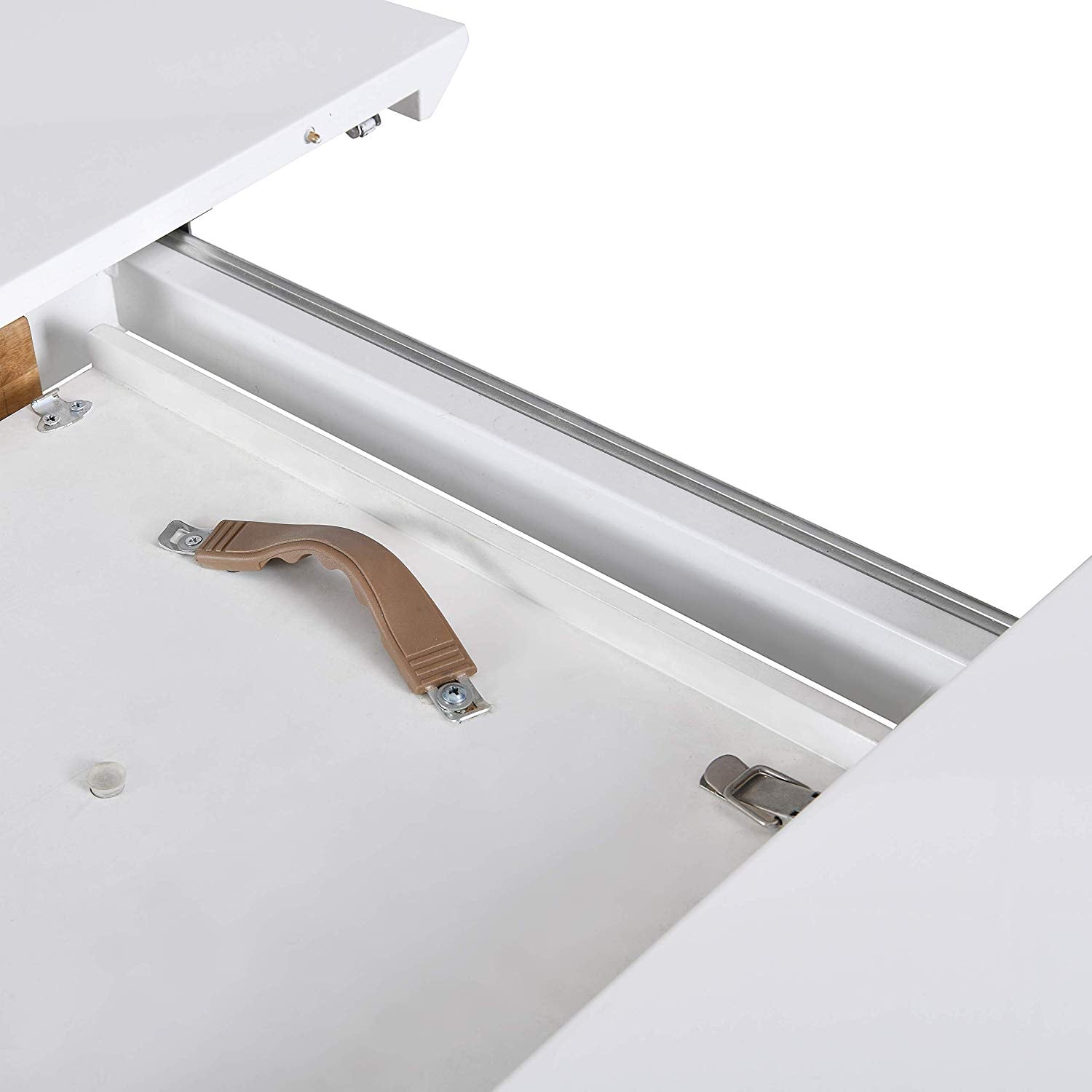 La surface de la table blanche brillante ainsi que ses pieds robustes effet bois (en acier) rendent la table à manger non seulement belle, mais aussi pratique et facile à nettoyer après les repas.