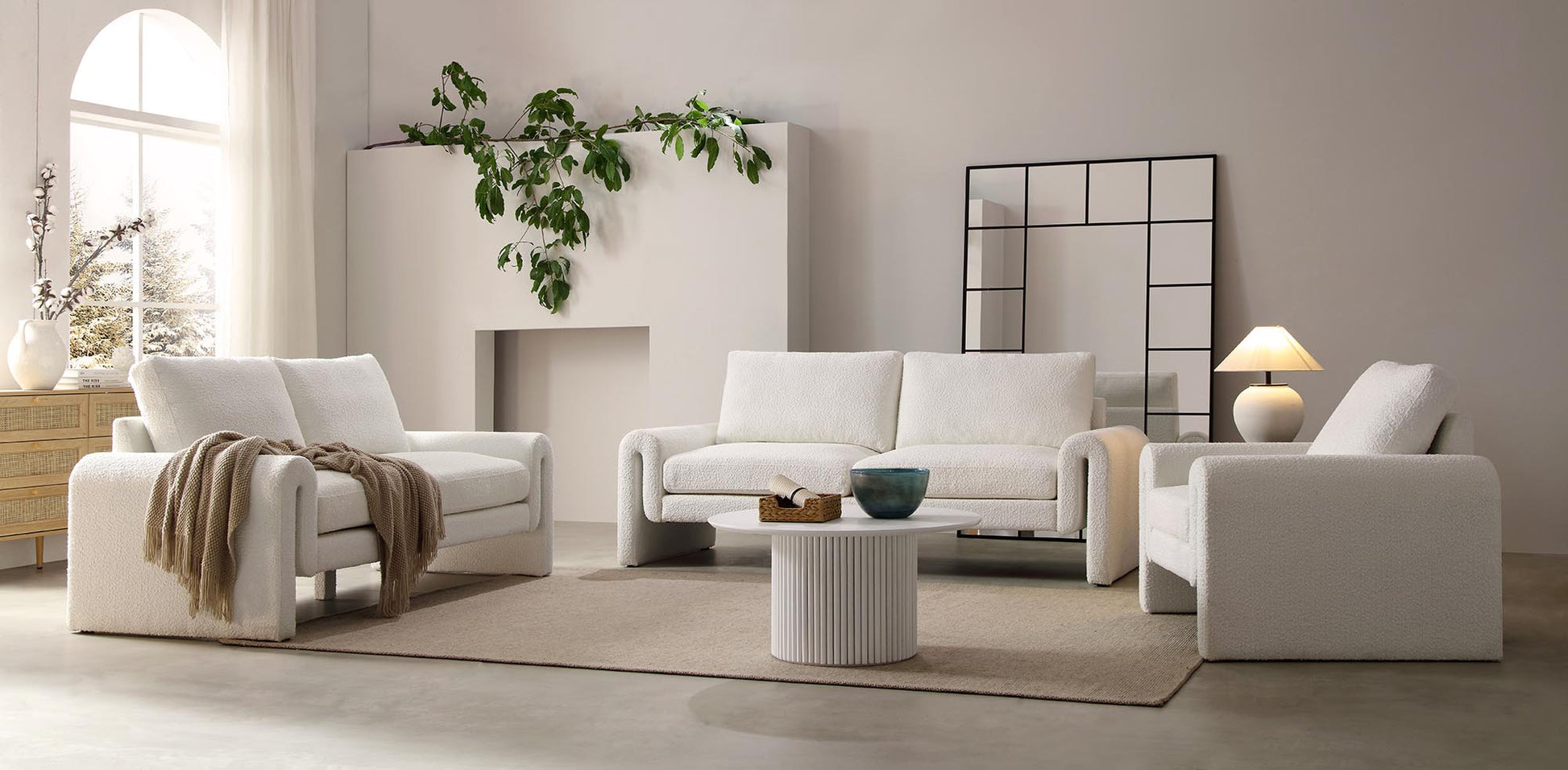 Revigorant le style moderniste pour les maisons contemporaines, notre canapé Hampstead présente une élégante silhouette curviligne dans un magnifique tissu texturé.