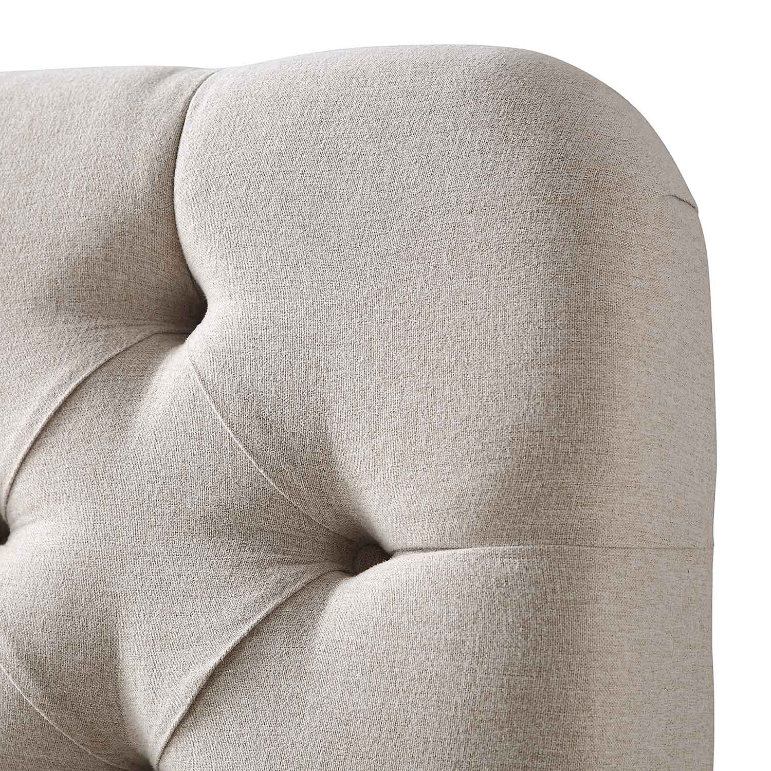 Les pieds tournés en bois massif se coordonnent avec le design boutonné.