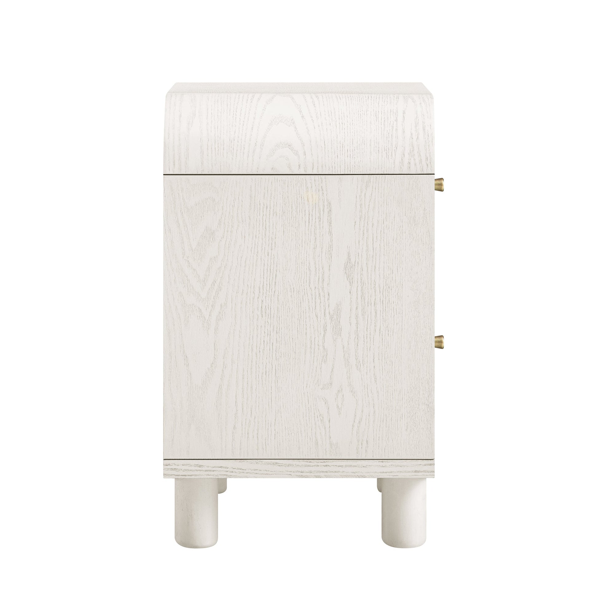 Notre table de chevet Maude offre une belle touche rehaussante à votre chambre grâce à son cadre et ses pieds arrondis en frêne.