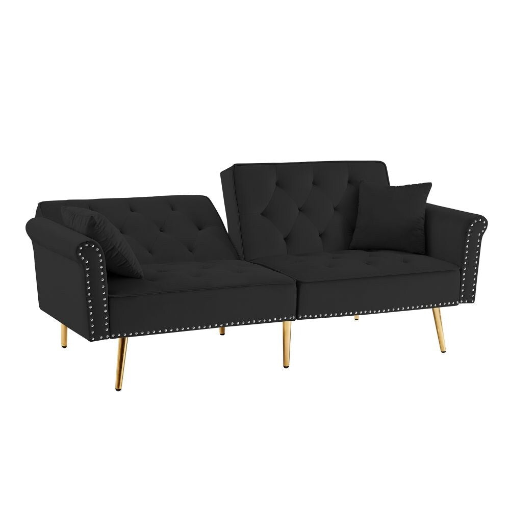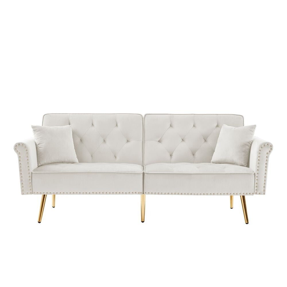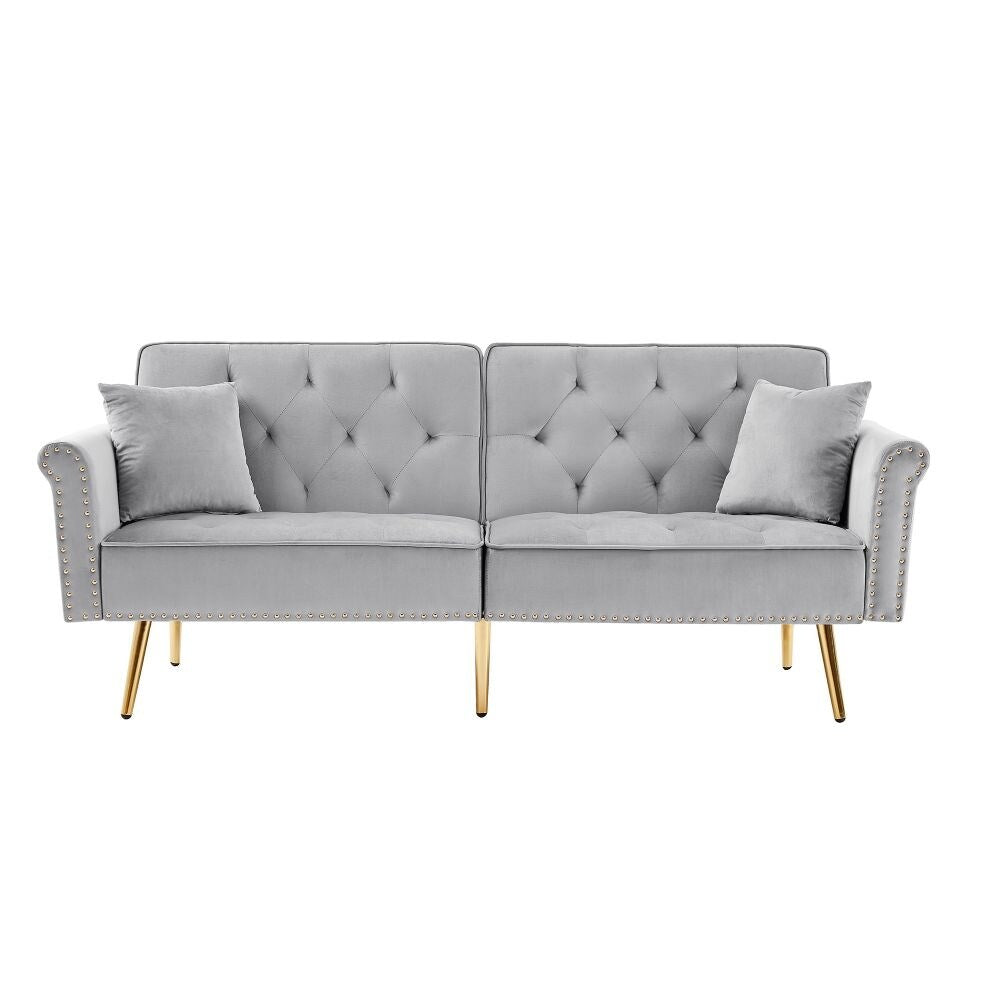 La surface de notre canapé-lit est confectionnée en velours confortable, doux au toucher et offrant une sensation de détente. Facile d'entretien, il ne se froisse pas et ne se décolore pas. Les coussins d'assise en éponge haute densité offrent un confort optimal. La structure de ce canapé est en bois massif et en bois manufacturé. Ses pieds en métal doré garantissent sa robustesse et sa capacité de charge jusqu'à 227 kg.