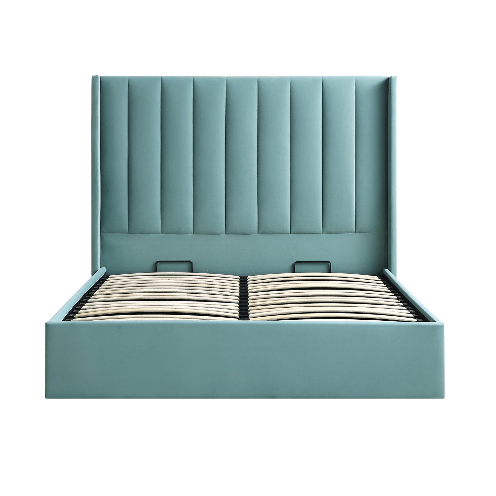 Lit de rangement ottoman en velours bleu écume de mer Wilton